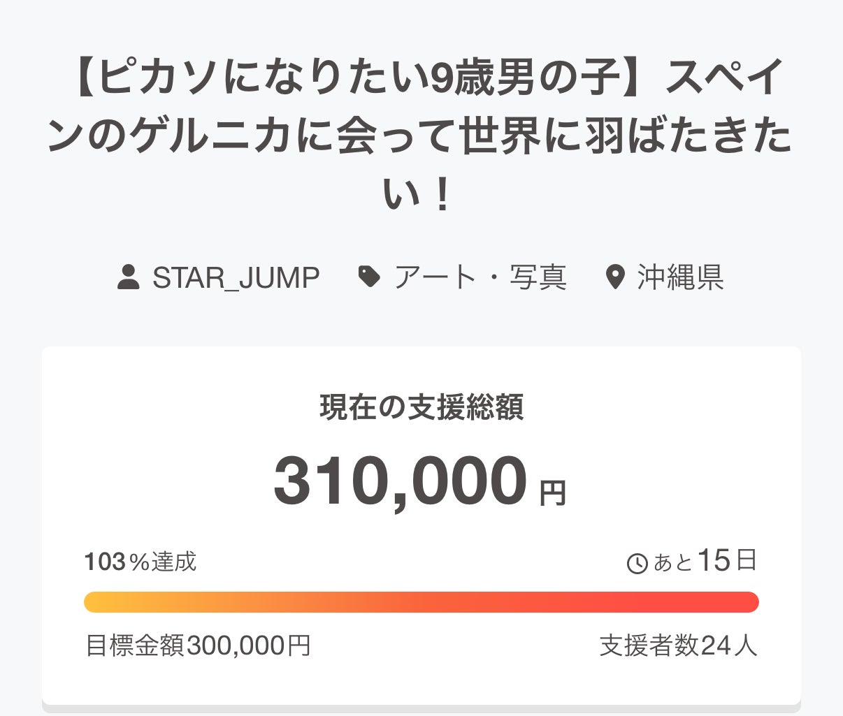 ご支援くださった皆さま、本当に感謝の気持ちでいっぱいです。