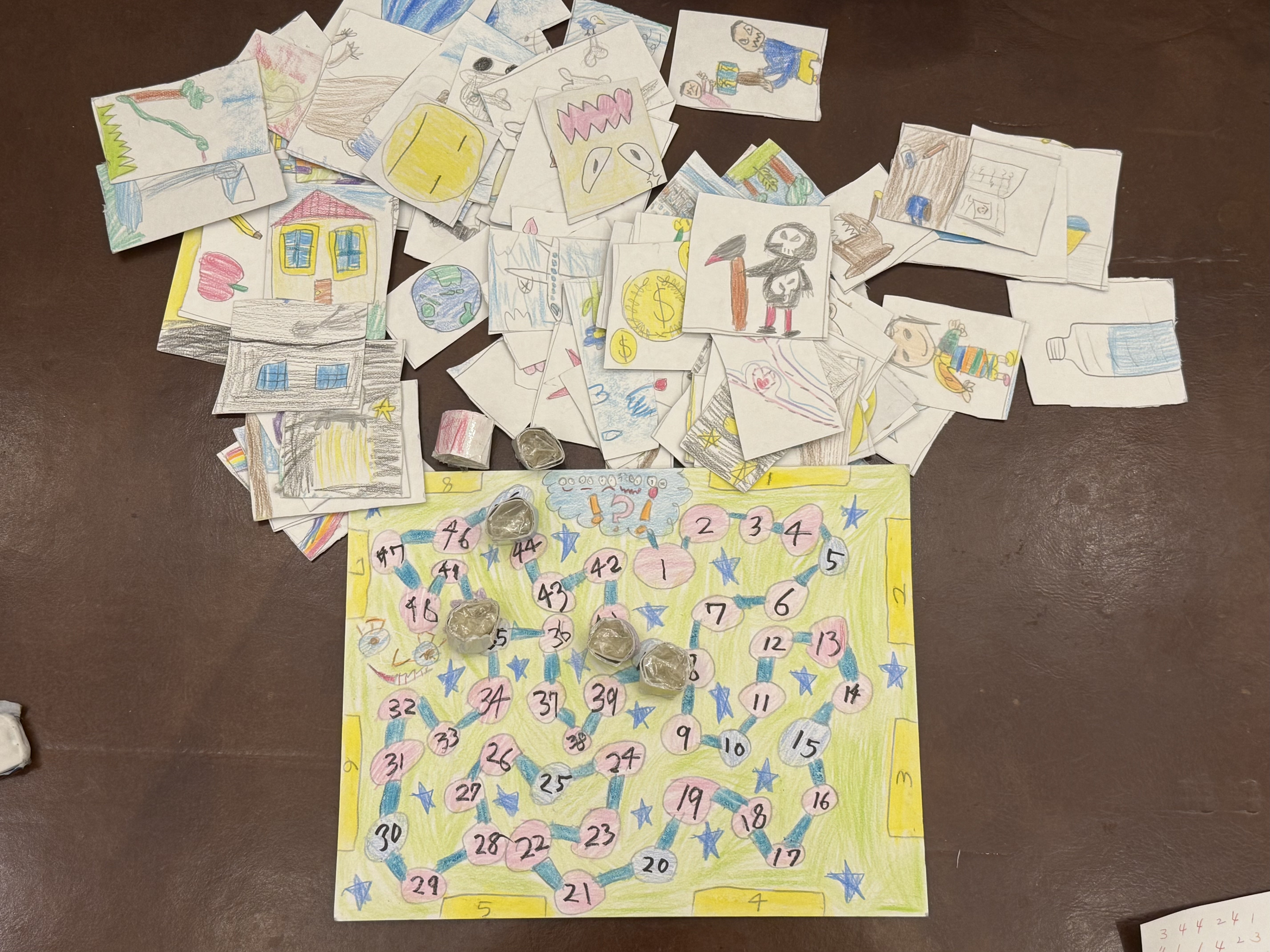 約90枚ものオリジナルカード、順番を示すコマやスコアボードまで作って、家族みんなで大笑いしながら遊びました。