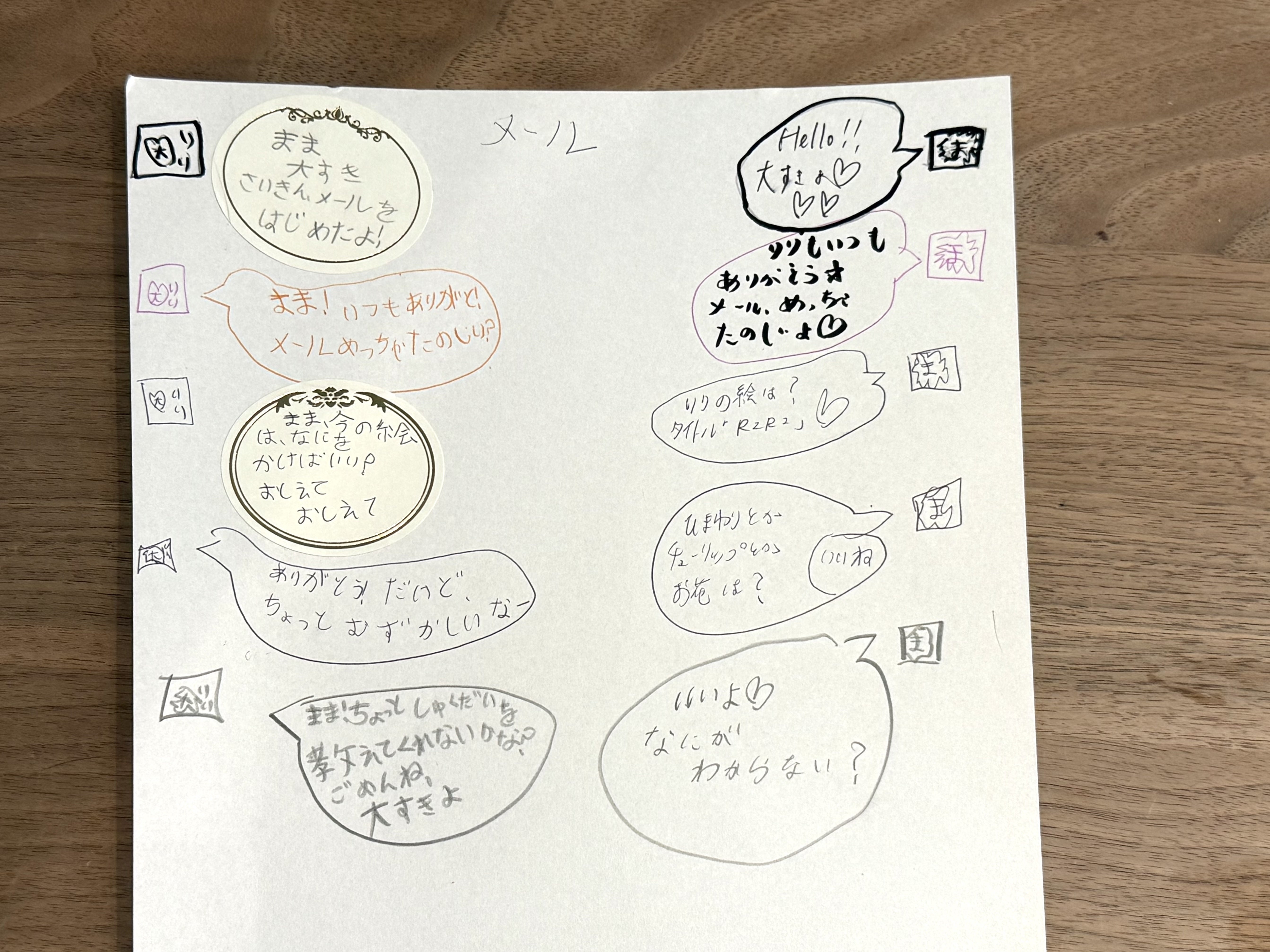 「スマホはまだ早いよ」と言うと、こんなふうに紙とペンで私と"LINEごっこ"を楽しんでいます(笑)。