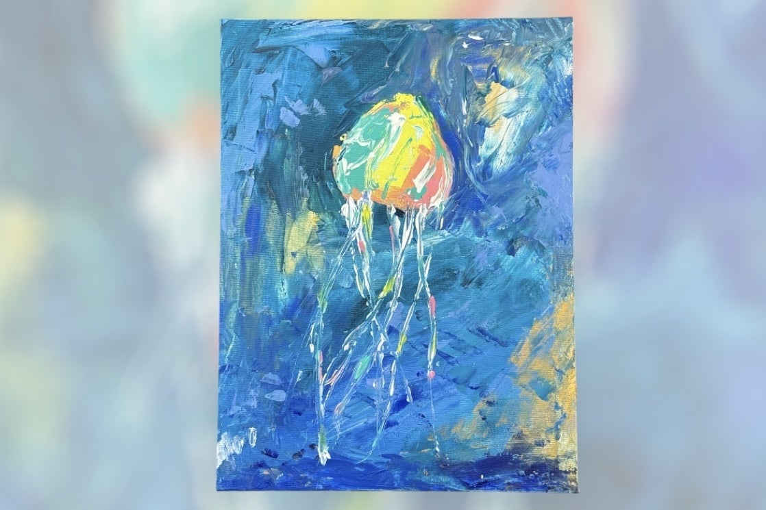 また、従姉妹からの「クラゲを描いて」というリクエストでは、彼女の雰囲気にぴったりな、優しく揺れるようなクラゲの絵になっていました。