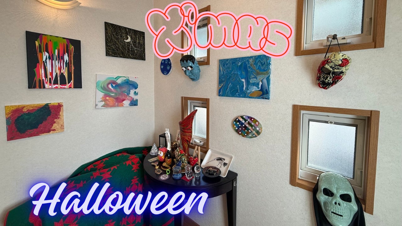 AKASHIとRIRIが「12月23日をハロウィンにしよう!」と言い出し、2人でハロウィンの飾りを再び出していました(笑)
