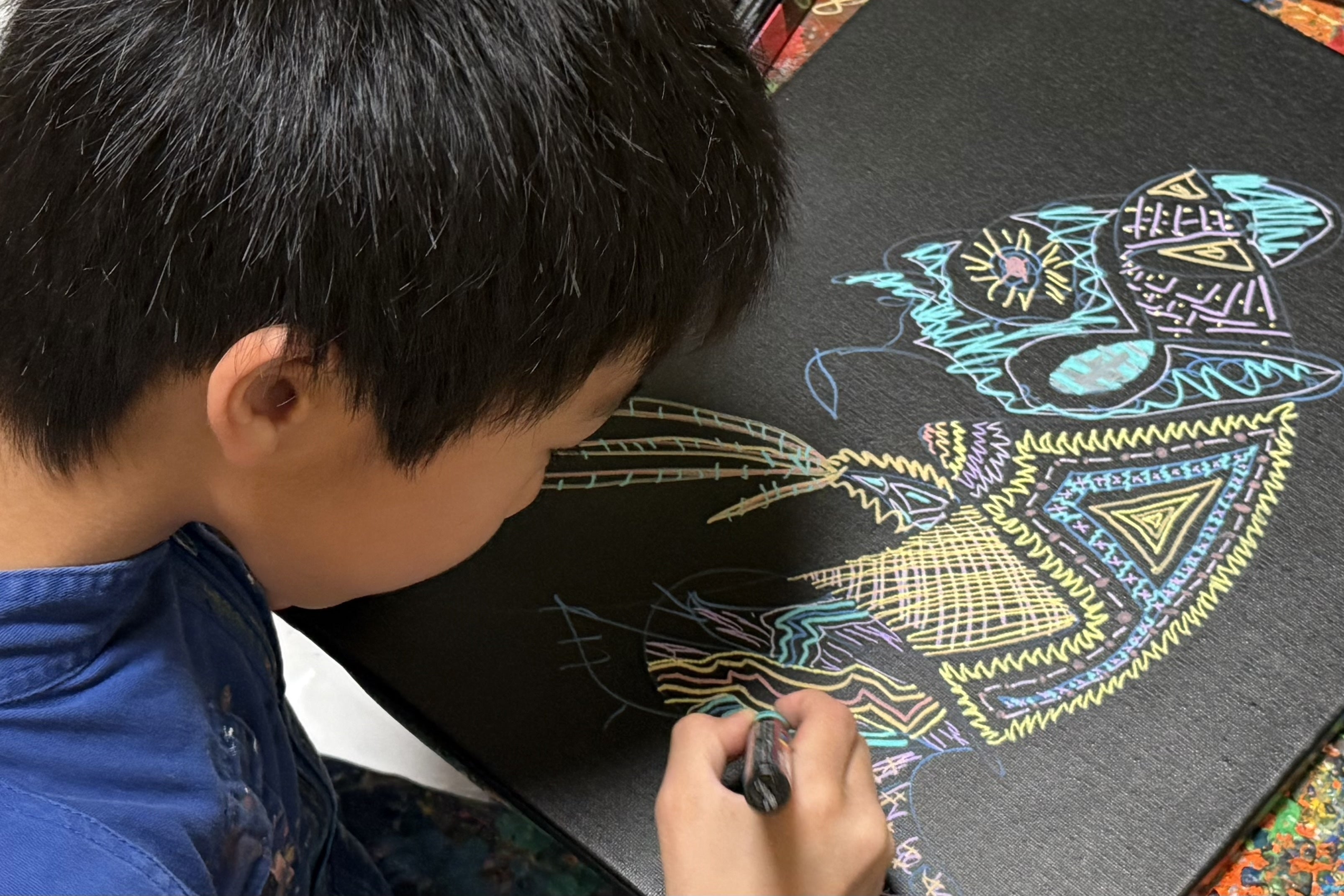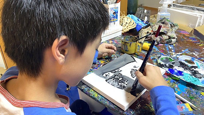 「ピカソみたいに自分の絵を飾ってみんなに観てほしい」という思いで毎日作品を描いて、2023年12月、8歳の時にホテルの一室で初個展を開催。