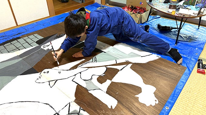 「原寸大のゲルニカも描きたい!」と熱望。どうしたら描けるかを家族で考えました。