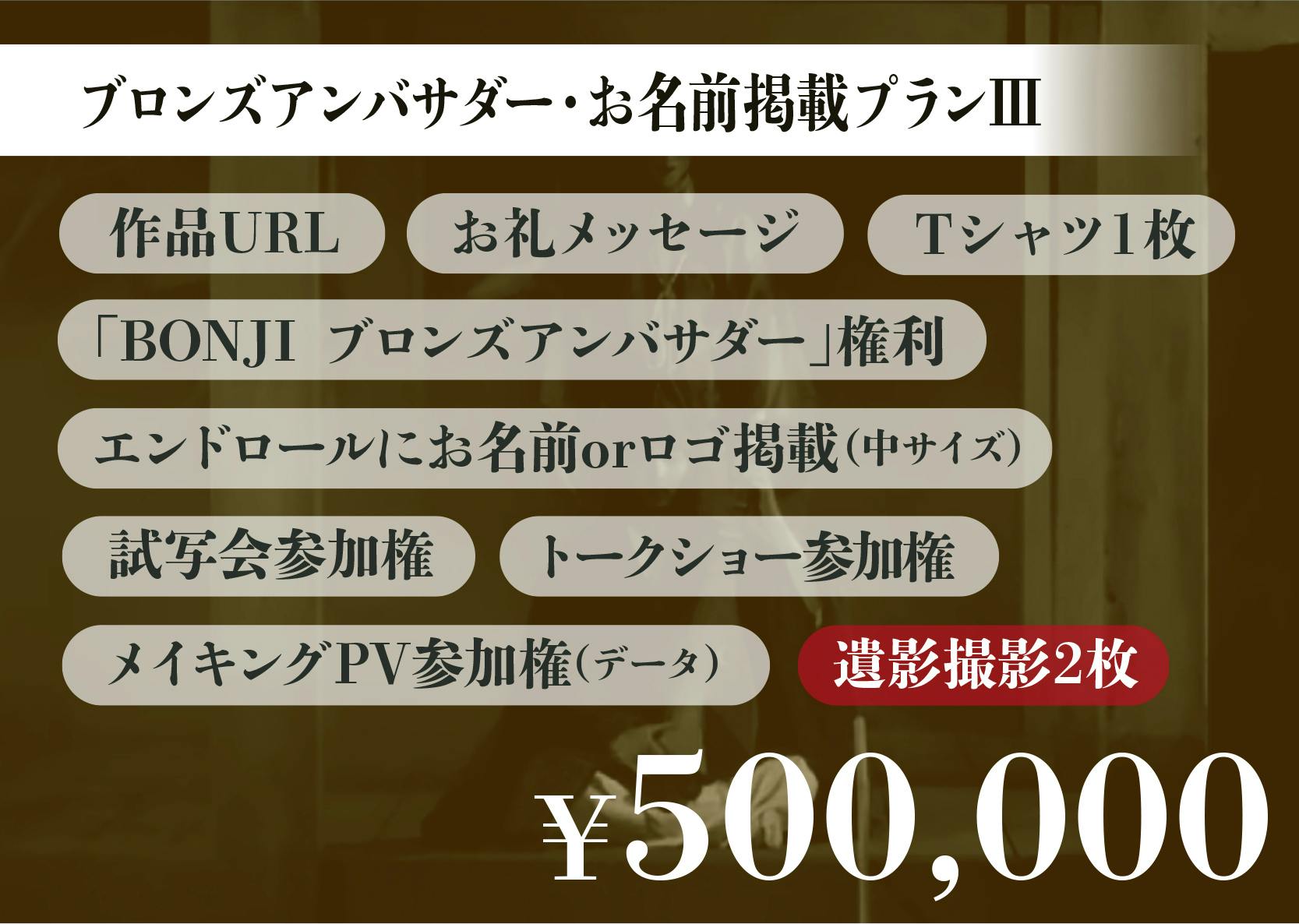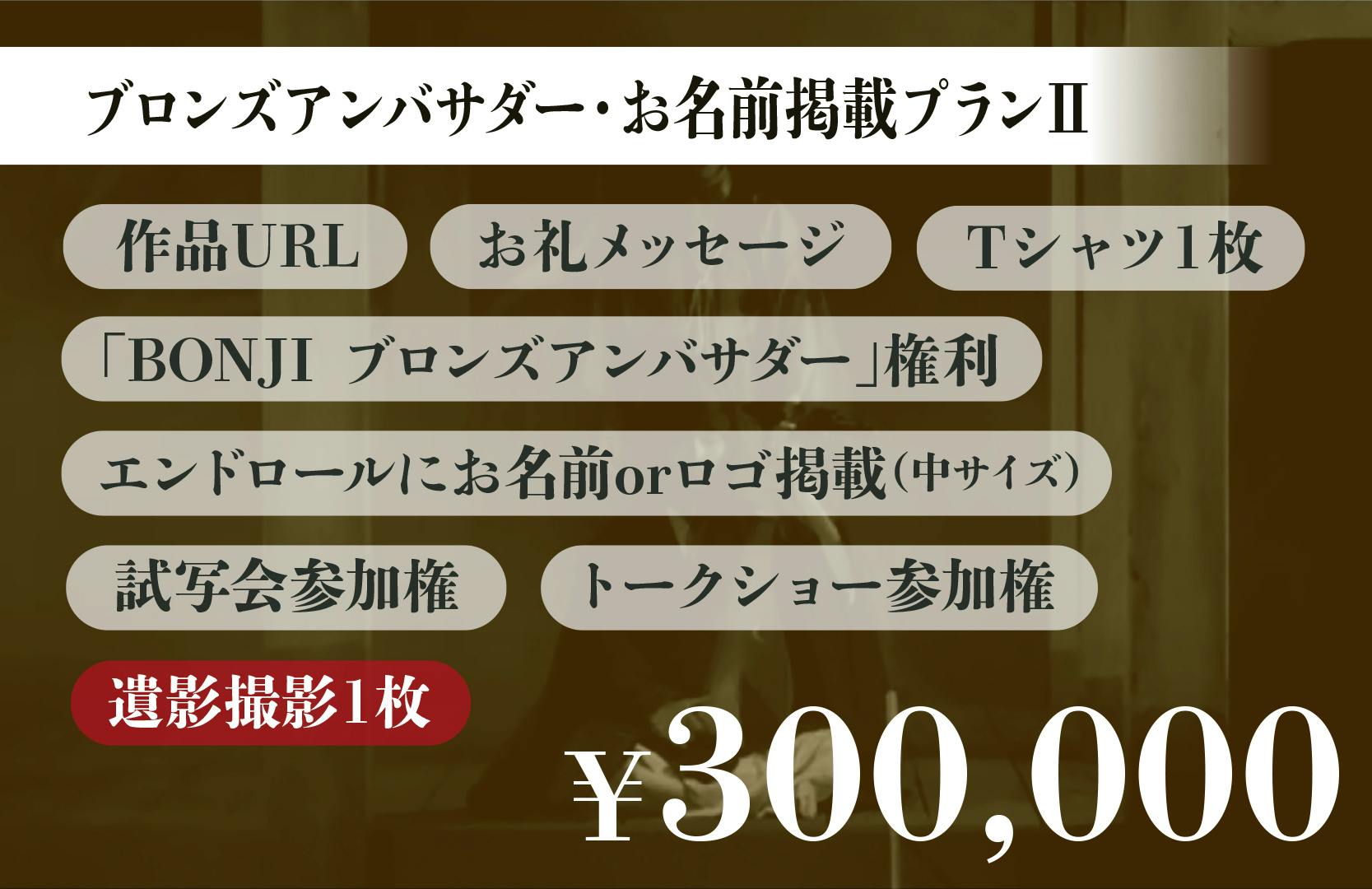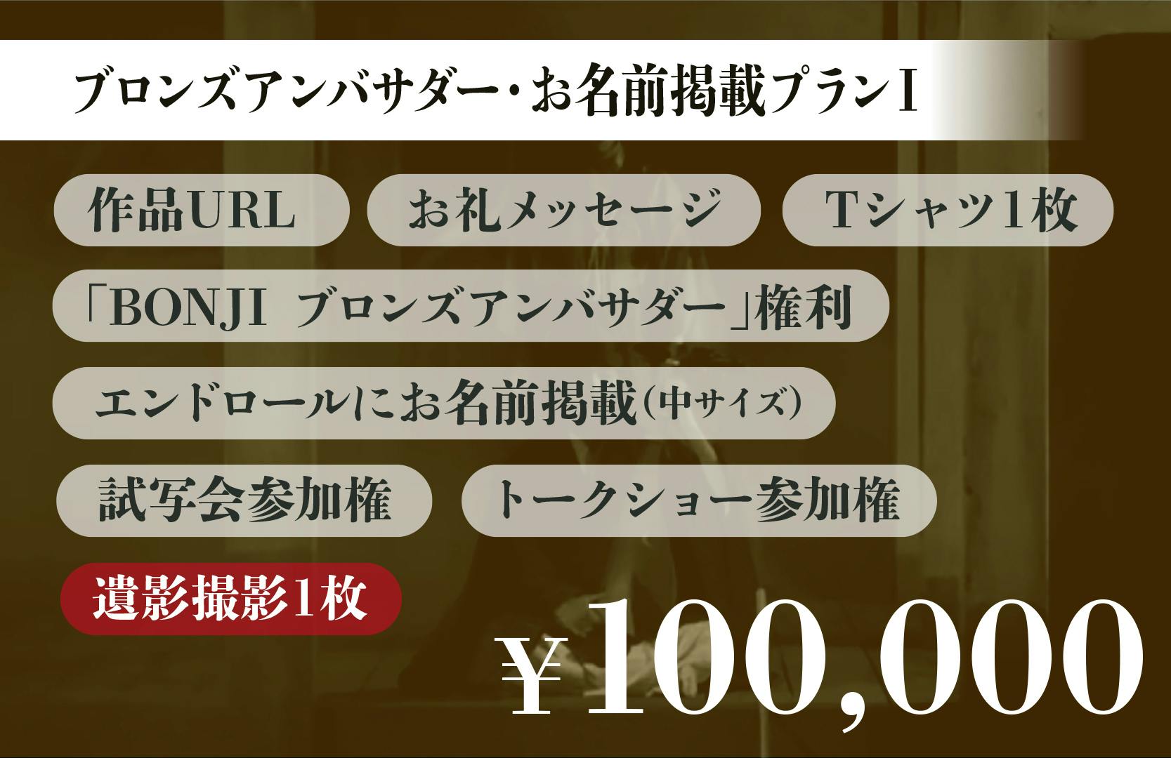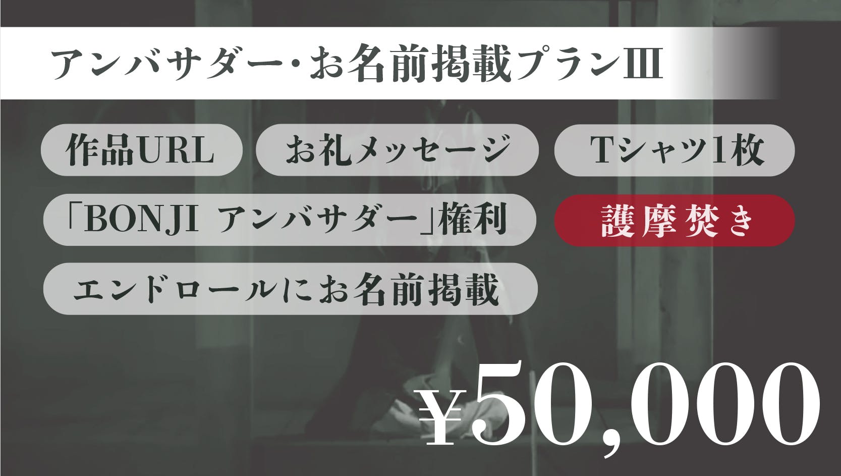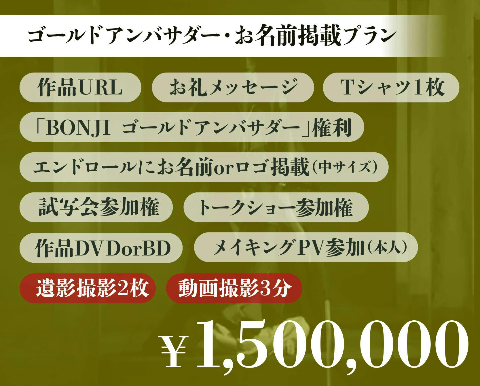 ストーリー重視ではなく、それらを「観る」という視点で描いた作品がこの『BONJI INFINITY』という映画です。この一見とっつきにくい作品を一緒に愛し、育ててくださる方に出会い、そして映画制作~上映のために応援していただきたく、今回クラウドファンディングに挑戦をすることにいたしました。