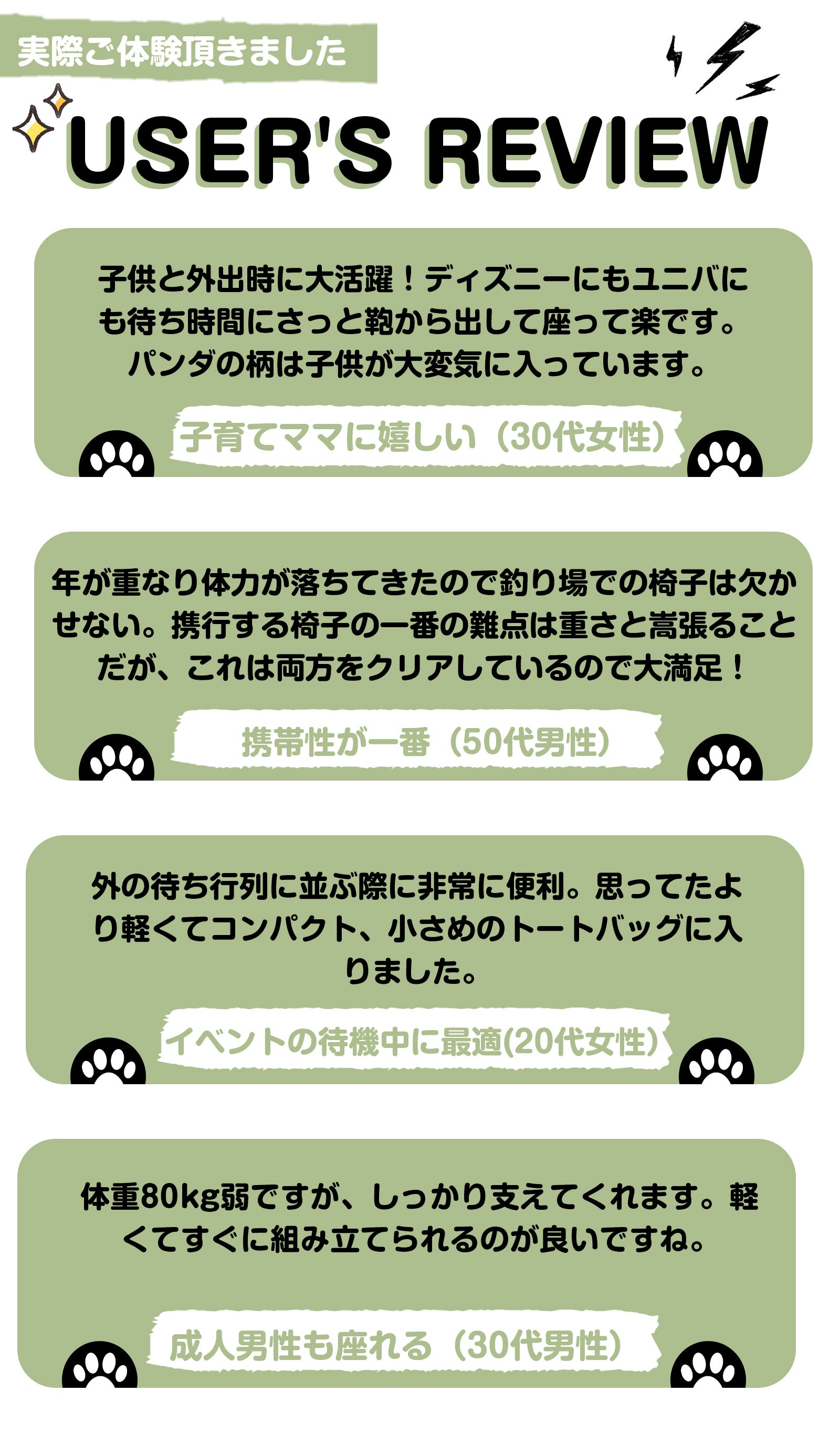 折り畳めばポーチサイズになり、リュックに入れてかさばらず、どこへでも持っていけます。遊園地や運動会、釣りや花火大会、お役に立てる場面が様々です。列に並ぶ際、サッと座って休憩できて楽です。