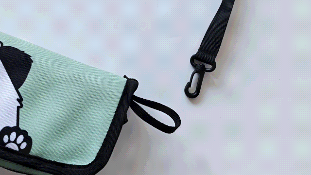 ベルトを付けてバッグ仕様になります。斜め掛けして手を塞がなくて楽です。
