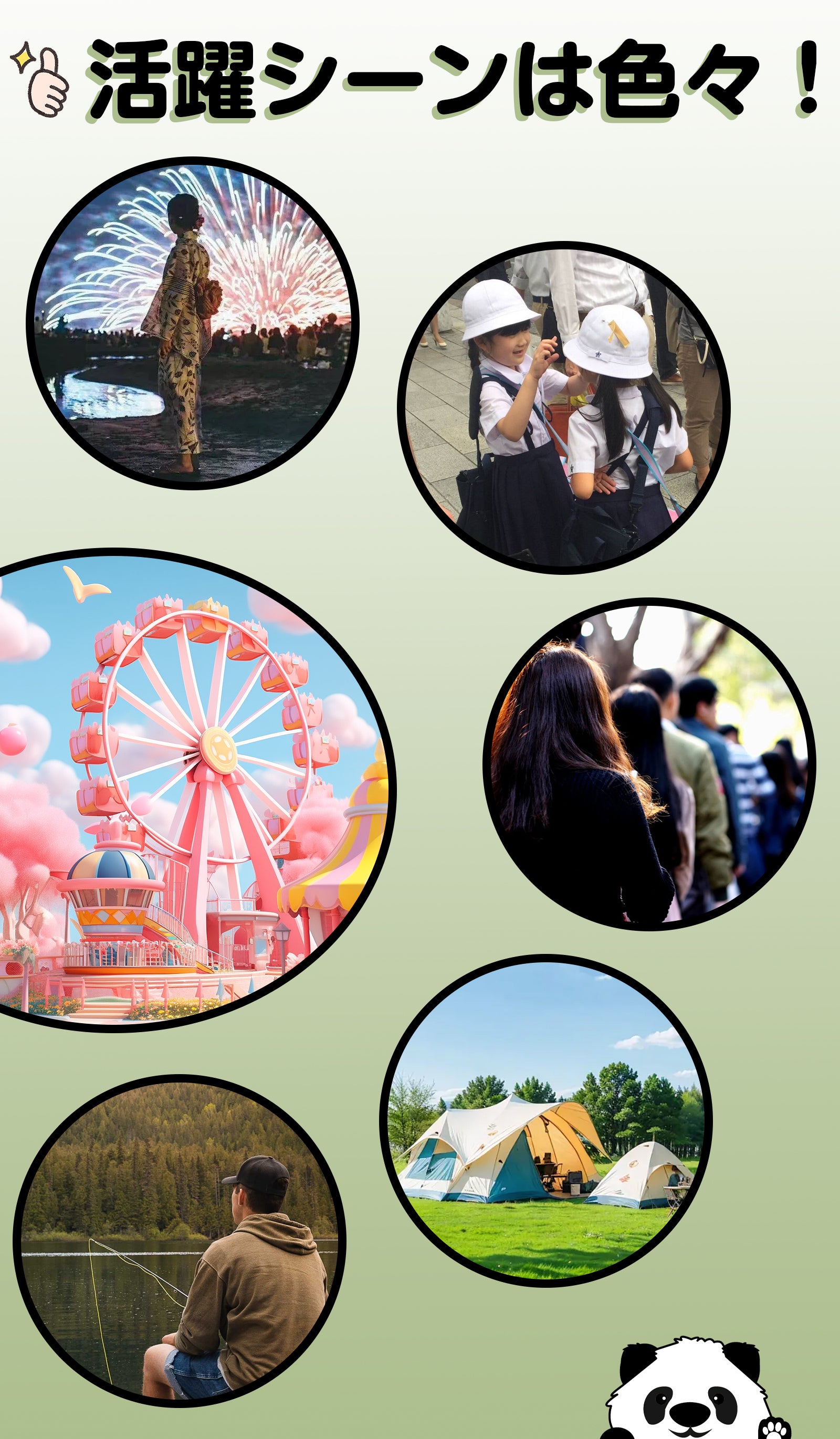 独自にデザインしたパンダの柄とライトグリーンの組み合わせがキュートでたまりません。思わず心を躍らせて、日常生活にちょっとしたハピネスをもたらします。