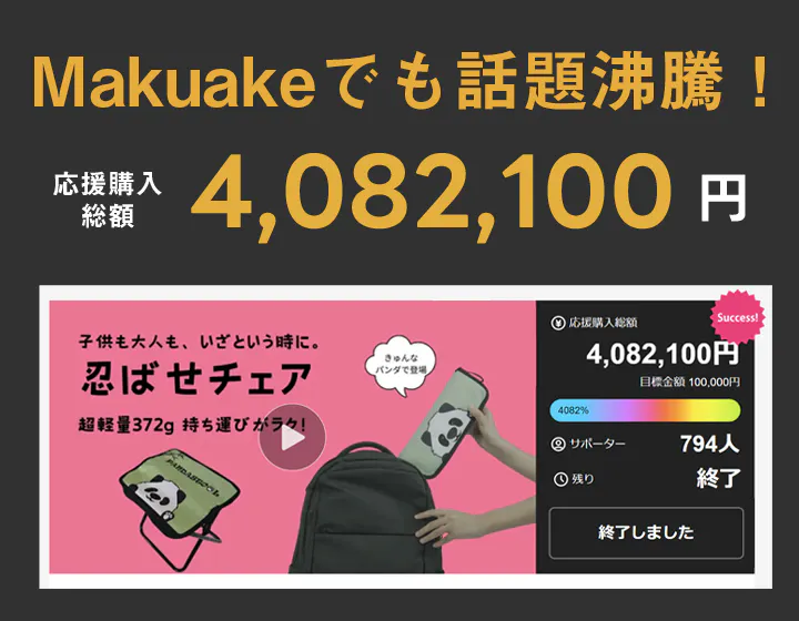 「忍ばせチェア」のプロジェクトが残りわずか!4月30日(火)23:59に終了、今最後のご支援を呼びかけています。