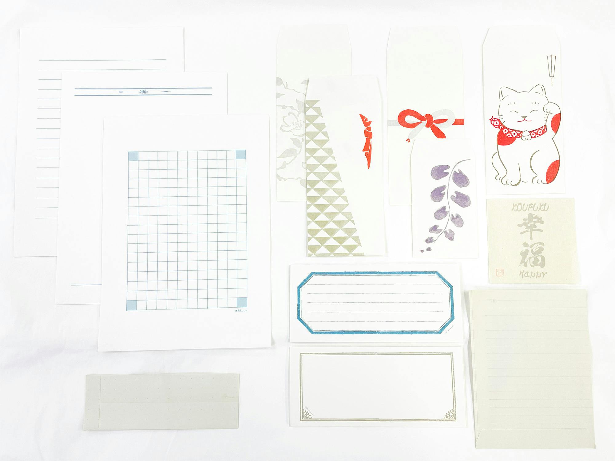 *高級ホテルや文房具店などの和紙を使ったオリジナルステイショナリー。(便箋や一筆箋、封筒、ショップカードなど)