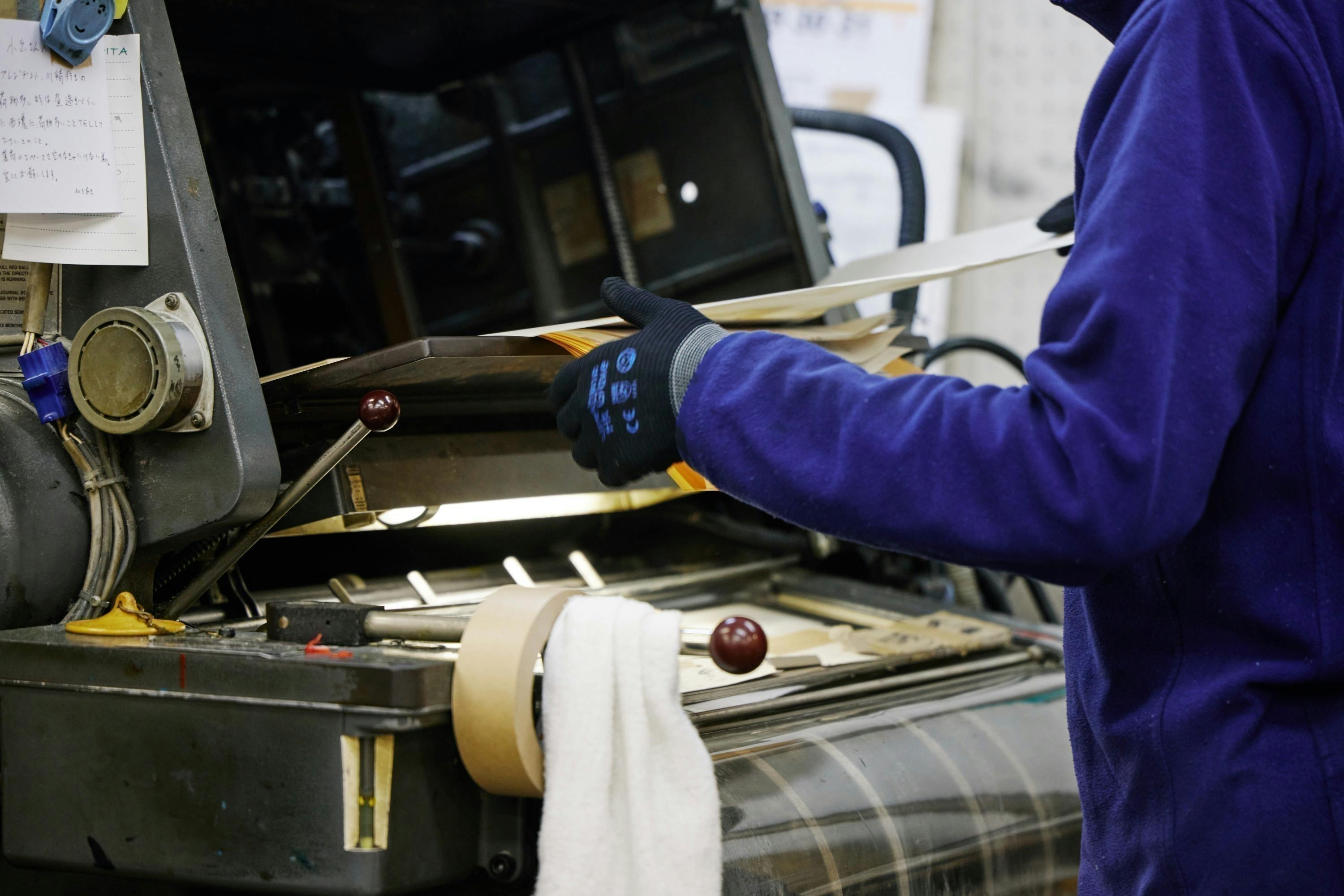 昔ながらの何十年選手の印刷機を使い、若くはない熟練の職人たちが必死に目を光らせ印刷しているんです。