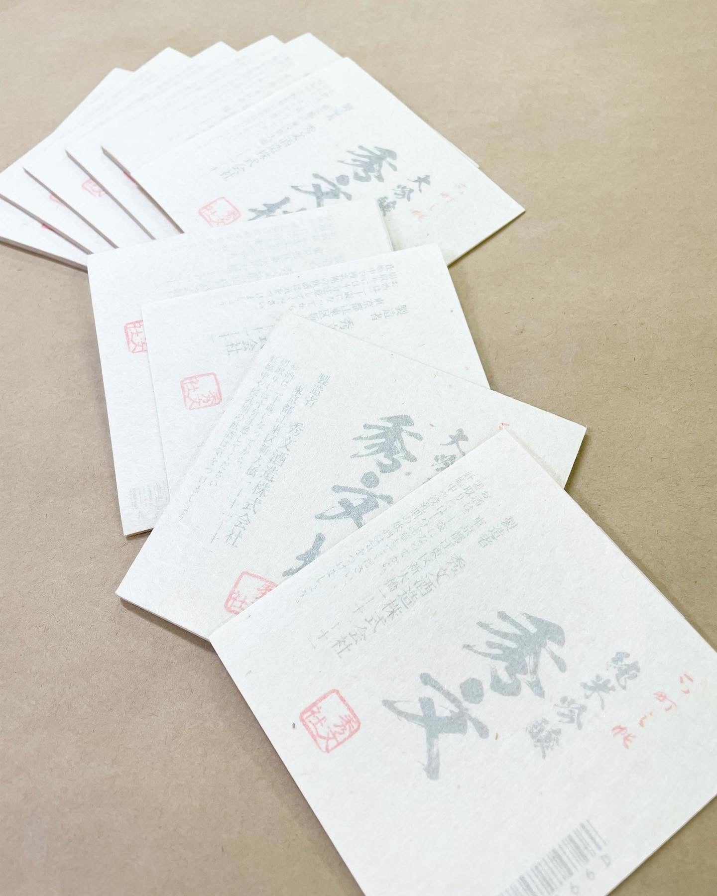 この美濃和紙への印刷技術を使って、既に30銘柄以上の酒蔵様の酒ラベルを様々な和紙で印刷したり、百貨店などの包装紙や文具店のこだわりの高級便箋、お寺の写経用紙の印刷などに役立てています。