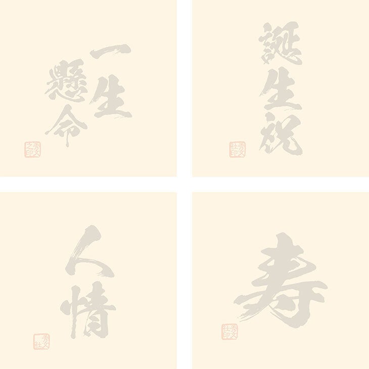 お好きな言葉とお好きな判子の文字(どちらも四文字まで)をご入力下さい。