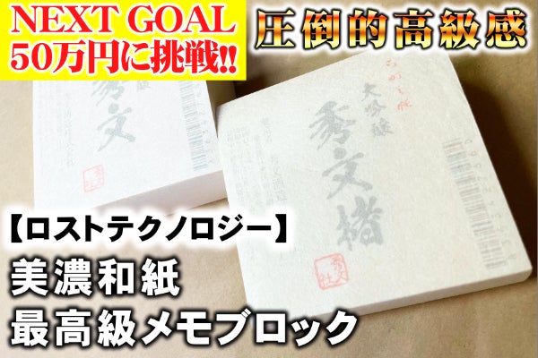 2025/08/06 17:20本日、8月6日に【和紙メモブロック各種プラン】のリターンの発送をいたしました!支援者の皆様ひとり一人に心を込めて印刷~製作をさせて頂きました。和紙メモブロック各種プランのご支援者の方には、少しばかりのお気持ちとしてメッセージをしたためた小さなお手紙を入れて発送しております。宅急便での発送となりますので、東京から見て遠方でない限り明日には到着すると思います。★もし3~4日たっても届かないなどありましたらご連絡頂ければと思います。*******************************************最後に。今回のクラウドファンディングはこれにて完全終了となります。ここまでお力添え頂いた皆様本当にありがとうございました。今回のリターンの製作物を改めて見てみて、なかなか見たことの無い面白いもので、高級感あふれる珍しいリターンを製作できたと自負しています。皆様の拡散のおかげで、和紙の印刷物の可能性は今回のクラファンを通して大いに広がりました。実際に、既に数社がこの一連の私の活動を知って連絡を下さり、弊社の和紙印刷を使った印刷物のご注文をして頂き、納品させて頂くことができました。和紙を使ったアートの印刷などにも派生して、様々な分野や様々な地域の方々からお声をかけて頂くことが出来ました。この度のクラウドファンディングの本当の意味を達成したなあと思っております。これから先は、もっと和紙印刷を広めていって、東京で和紙印刷と言ったら秀文社印!と言われるまでになりたいです。そして、バージョンアップした和紙のメモブロックのクラウドファンディングをまたやってみたいと思っています。メモブロックだけでなく、便箋や一筆箋が欲しいという方もいらっしゃいましたので、リターンをメモブロック以外にも作って、様々な和紙印刷の可能性を探ってみようと思います。こんなのやったらどうか?とか、こういうのほしい!などありましたら是非コメント欄に書いてみて下さい!次回の参考にさせて頂きます。末筆ですが、初めてのクラウドファンディングで、拙い私のプロジェクトに賛同して頂いた皆様、誠にありがとうございました。これからもこの会社を大きくしていけるよう頑張っていきますので、どうぞあたたかく見守って頂ければと思います。またいつかクラウドファンディングで登場しようと思いますので、その時はまたどのような形でも結構ですので、応援して頂けますと幸いです。SNSでも引き続き私の活動を見ていて下さい。この度は本当にありがとうございました!!!秀文社印刷株式会社 鈴木寛明 もっと見る和紙のメモブロック発送まではもうしばらくお待ち下さい!