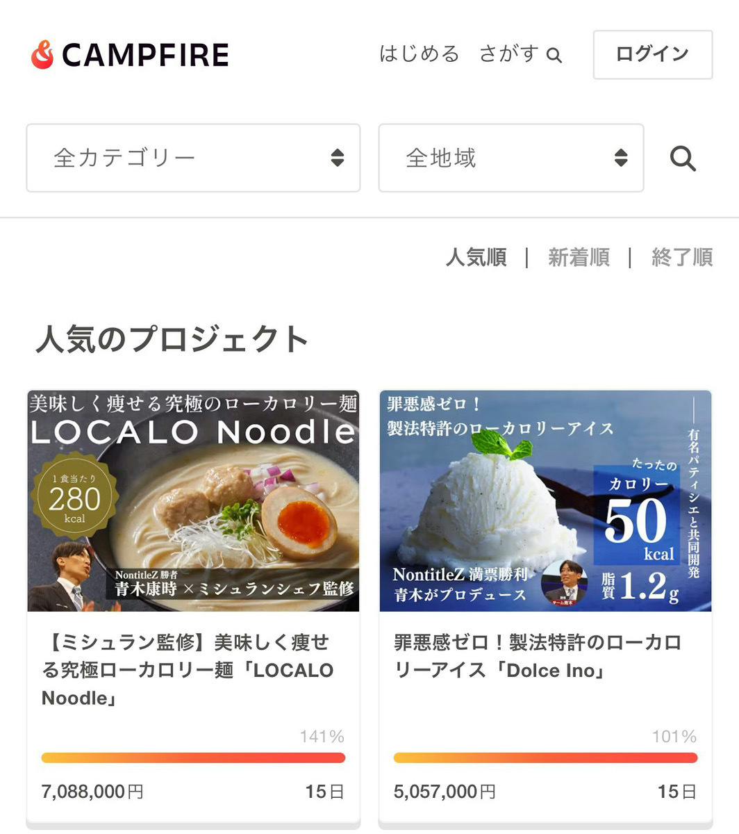 CAMPFIREの人気プロジェクトでも1位と2位を独占出来ております!