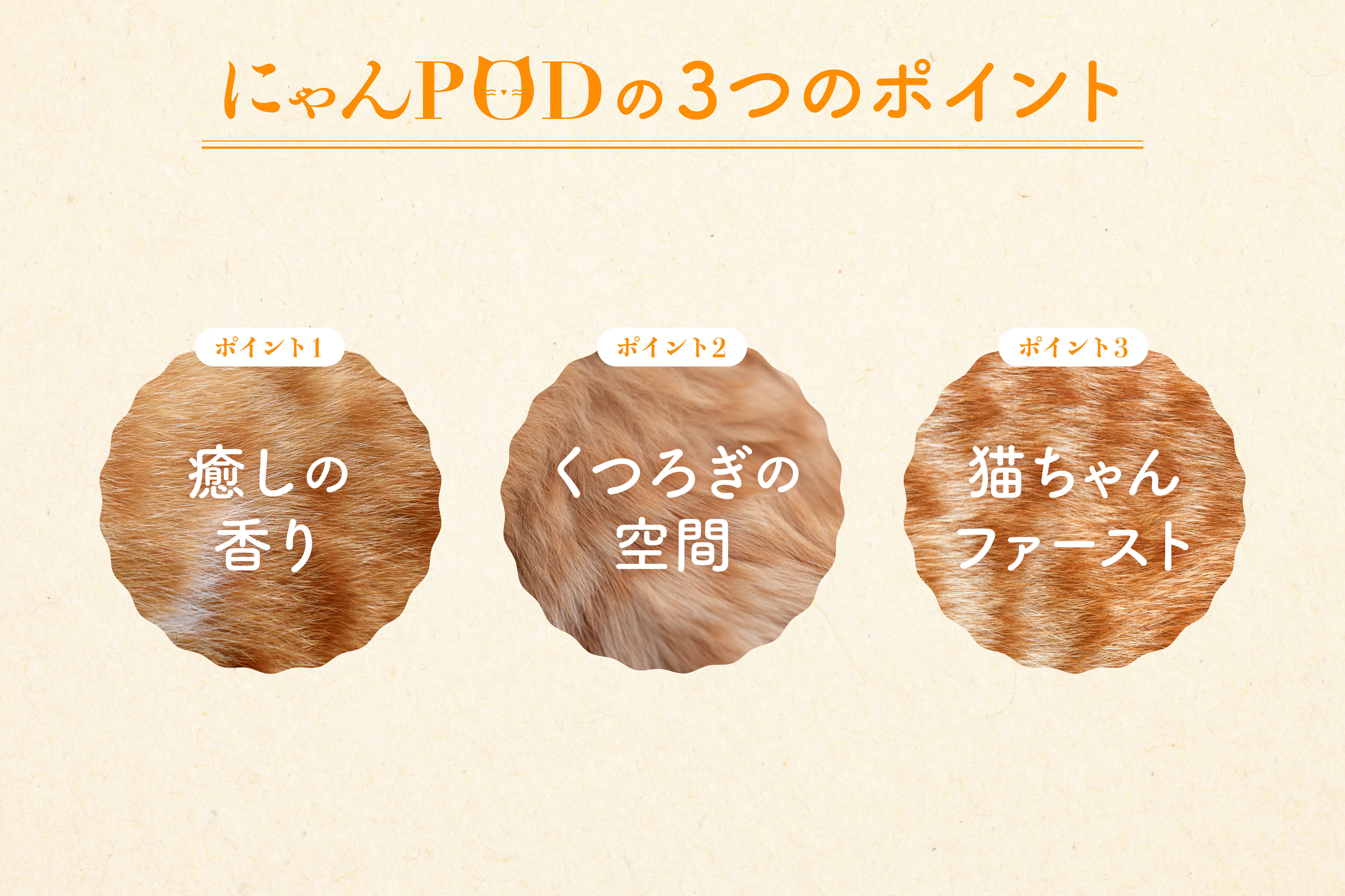だからこそ、「猫の香り」と「モフモフの幸福感」に包まれ、短時間で心が安らぐ「にゃんPOD」なのです。