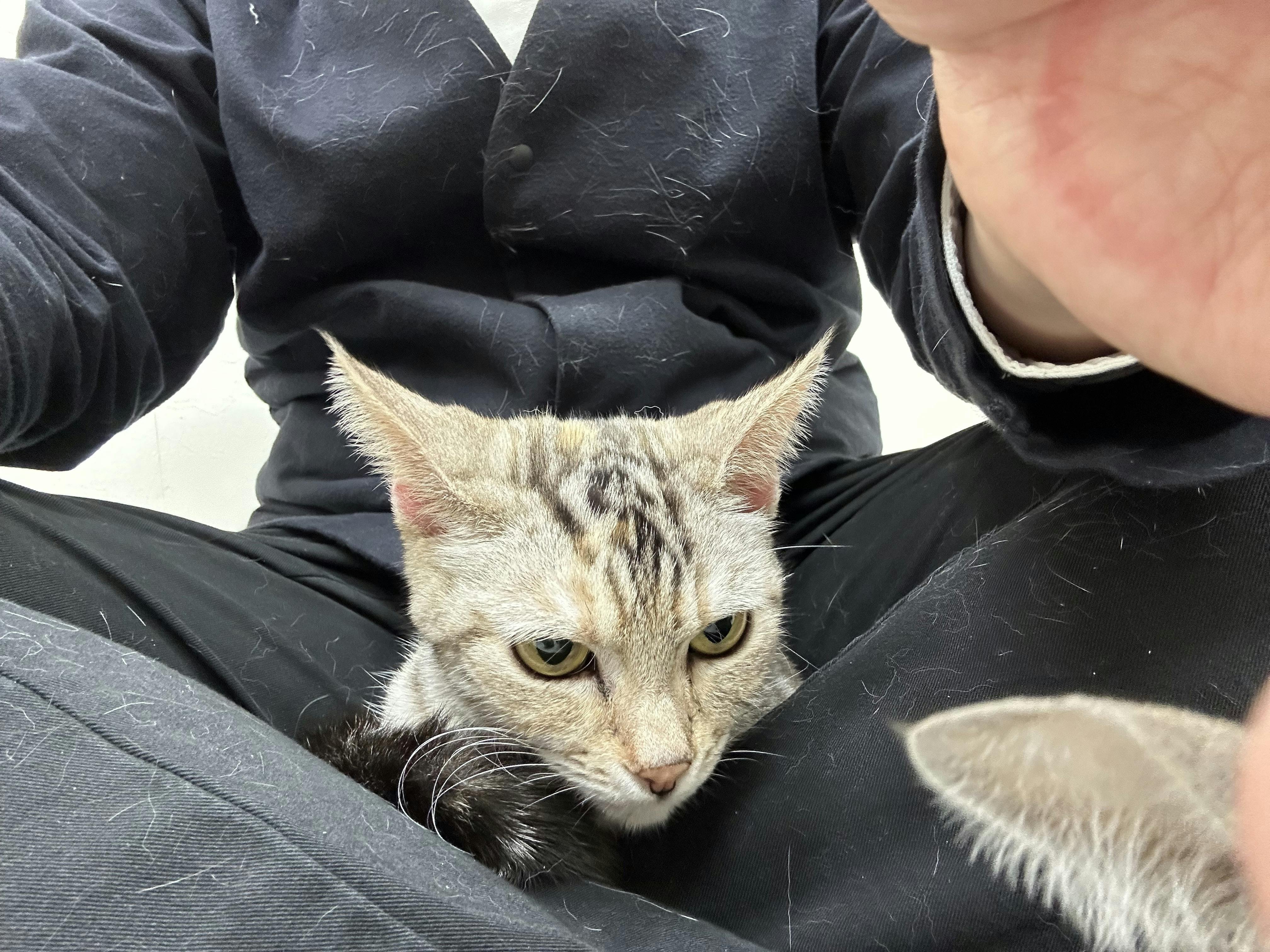 みなさまのおかげで、10万円突破です!ありがとうございます。けれど、目標金額にまでは、まだまだまだまだです。どうぞ引き続き、応援よろしくお願いいたします。ちなみに画像は、先日、事務所に打ち合わせにきた、男性スタッフが、黒系の服装だったため、猫にまみれたら、毛だらけに、、、そりゃ、そーですよね(笑)