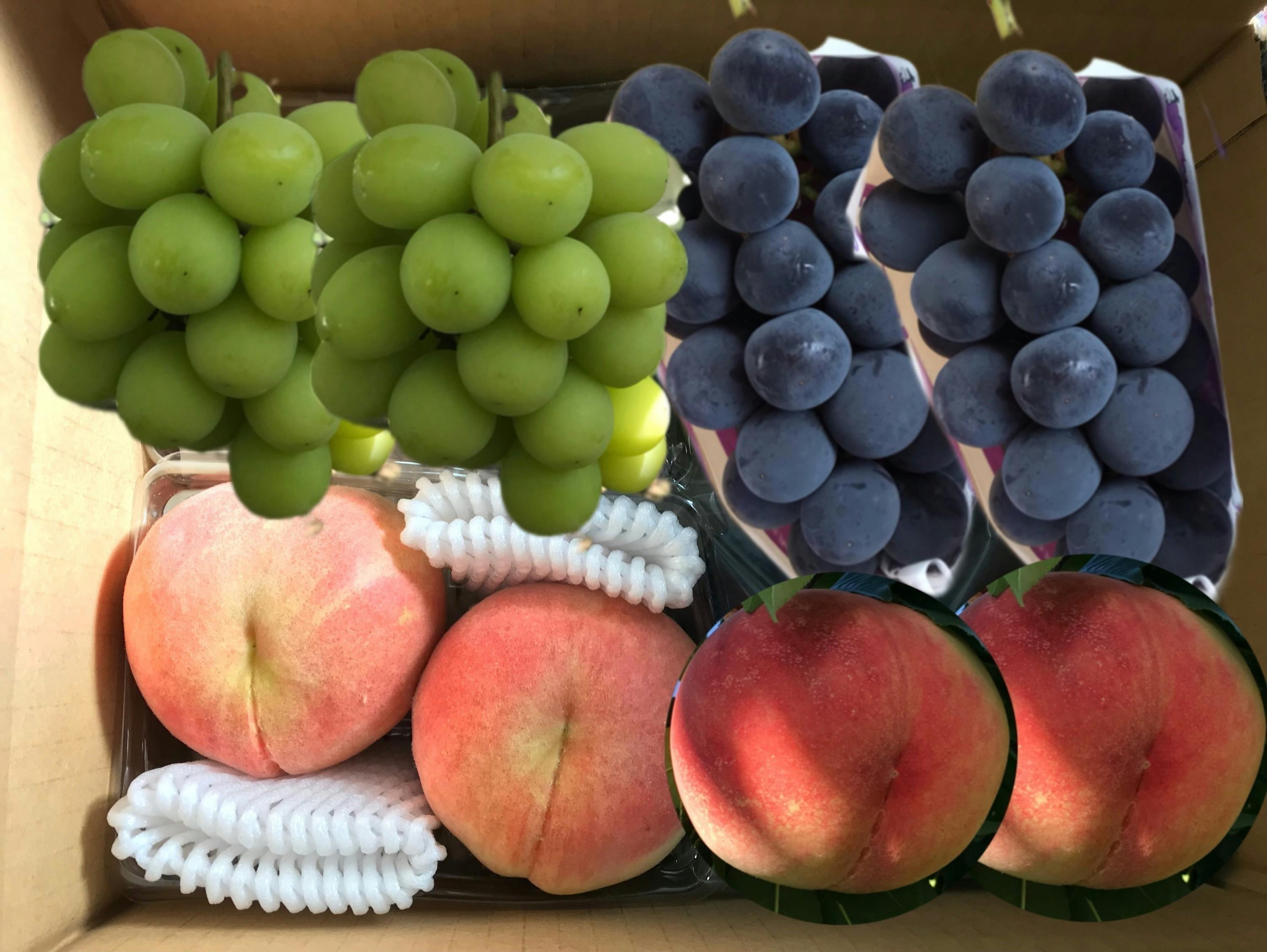 ⑨【葡萄、桃合わせて3kgセット】ピオーネ1kg×シャインマスカット1kg×幸茜1kg 8,500円 (送料込)