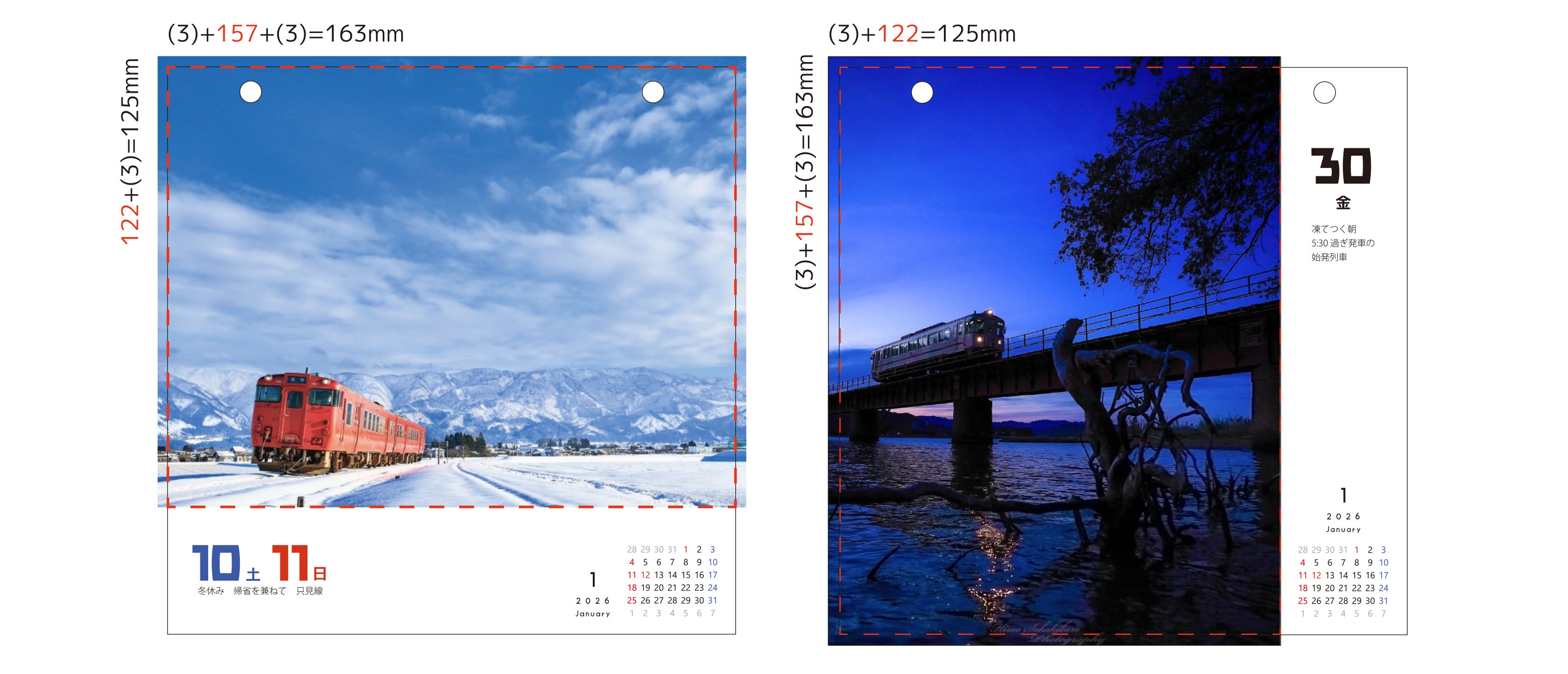 ※縦横125×163mm(赤い点線122×157mmが仕上がり)です。
