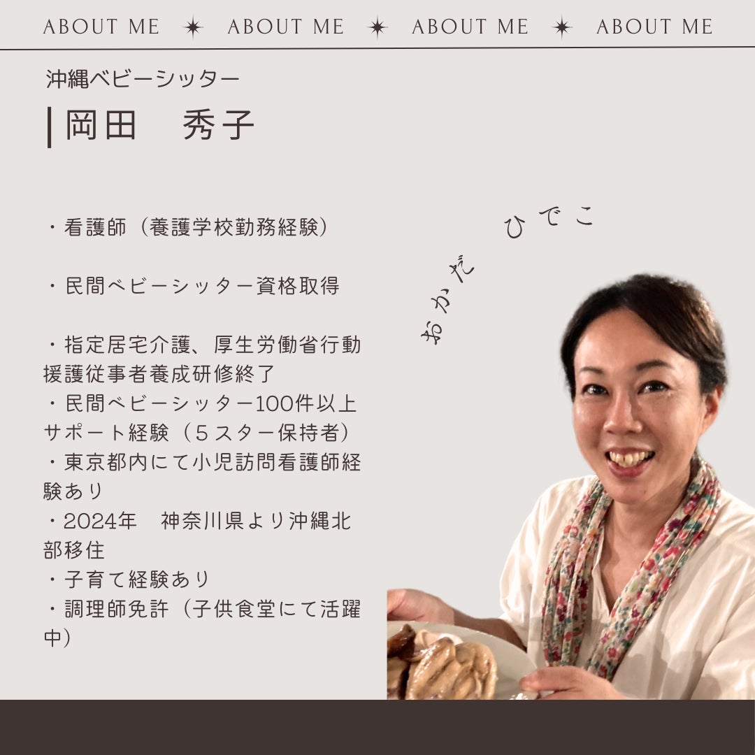 現在、沖縄のベビーシッターとして子育てをしながら、活動をしています。