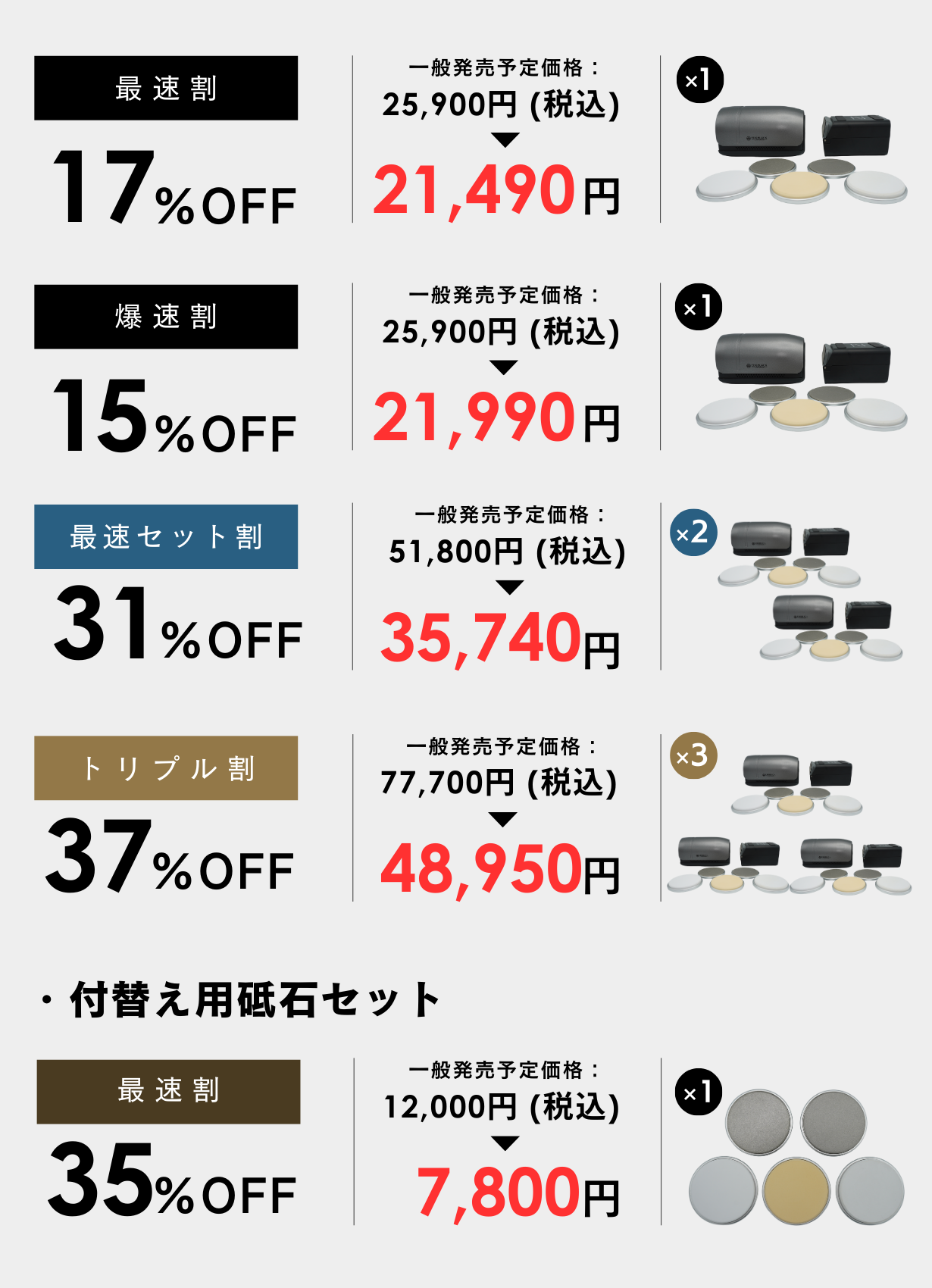 ※本プロジェクトを通して想定を上回る皆様からご支援頂き、現在進めている環境から量産体制を更に整えることができた場合、正規販売価格が販売予定価格より下がる可能性もございます。