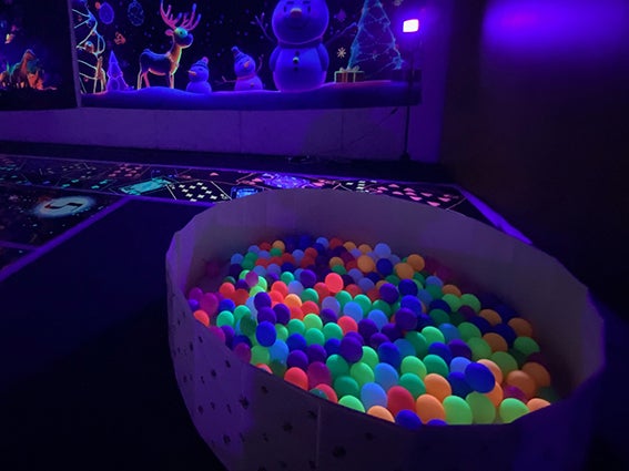 カラフルなボールがたくさん入っているプールで自由に遊べます。蛍光色に発光するボールは柔らかい素材でお子さんにも安全です。暗い空間の中で輝くボールにお子さんも興味津々です。