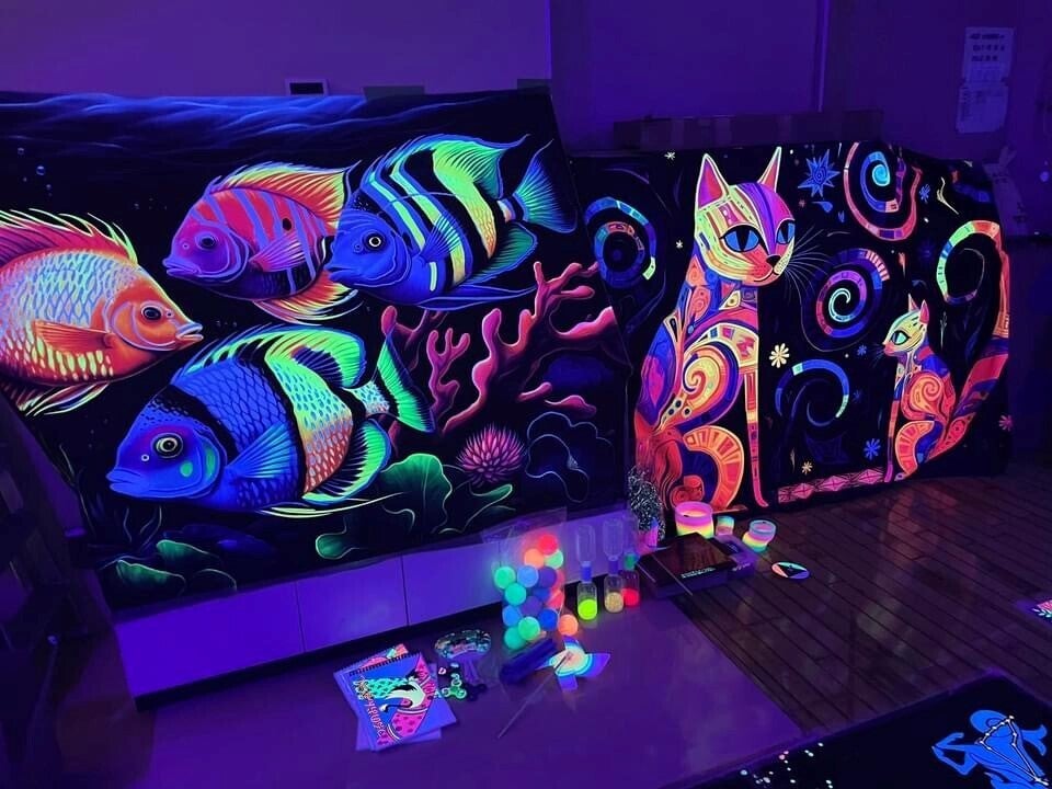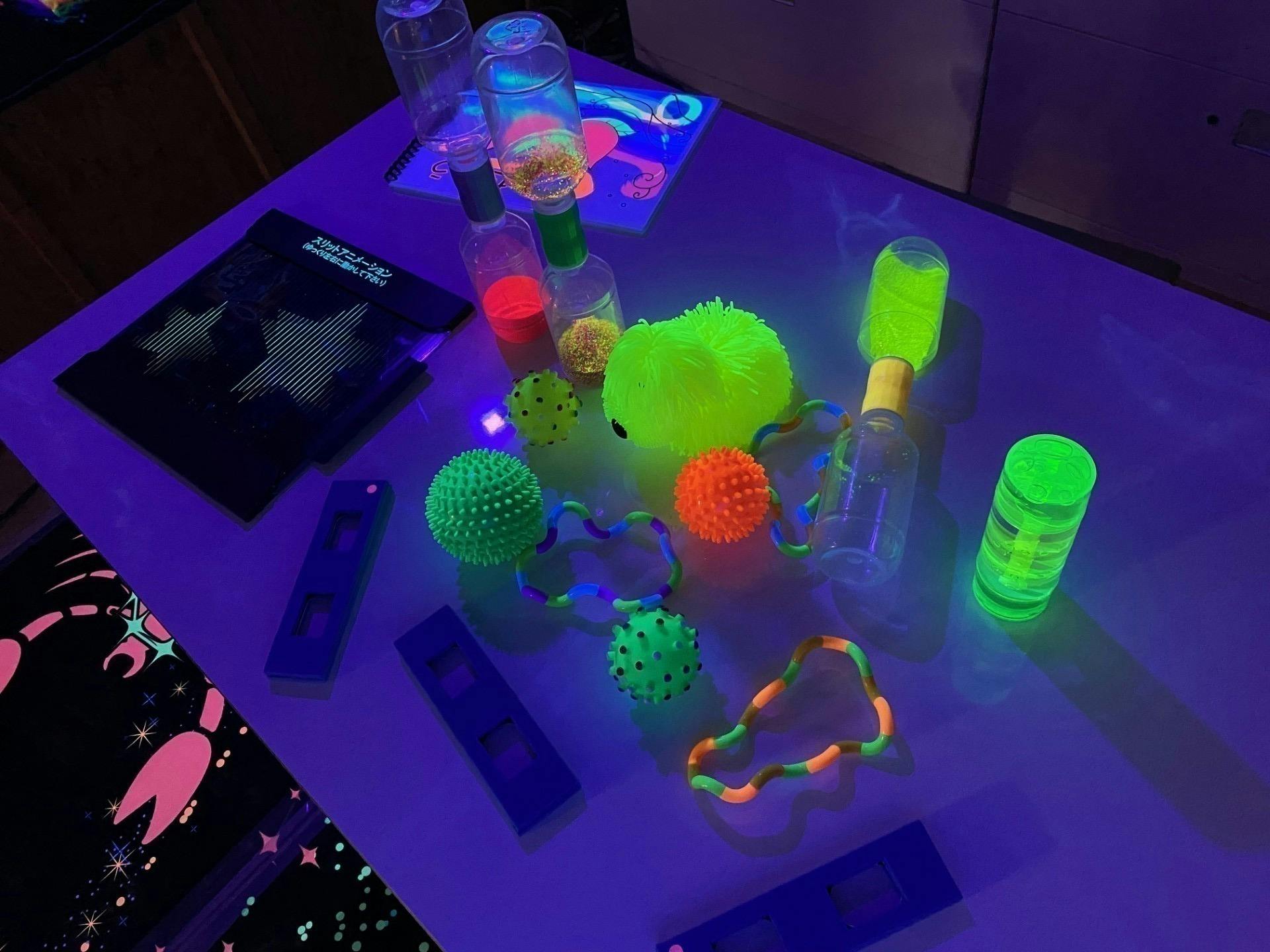 2025/05/09 14:30スヌーズレンブラックライトルームは会場の広さに合わせて大小100種類以上のアートをご用意しています。大きな会場でもご自宅での「おうちスヌーズレン」などにも活用頂けます。 もっと見る