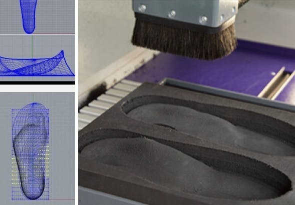 当社では、これまで数万足以上の「医療用オーダーインソール」の製作に携わってきました。その作り方は、医師の処方に従い、患者様の足の型をとり、石膏で足のモデルを削り出し、そのモデルの足裏の形状に沿ってインソールを作製するというもの。とても高品質ですが、手間がかかる分、1足4万円前後と高額がネックで、保険適用がないと手に入れることは従来困難でした。