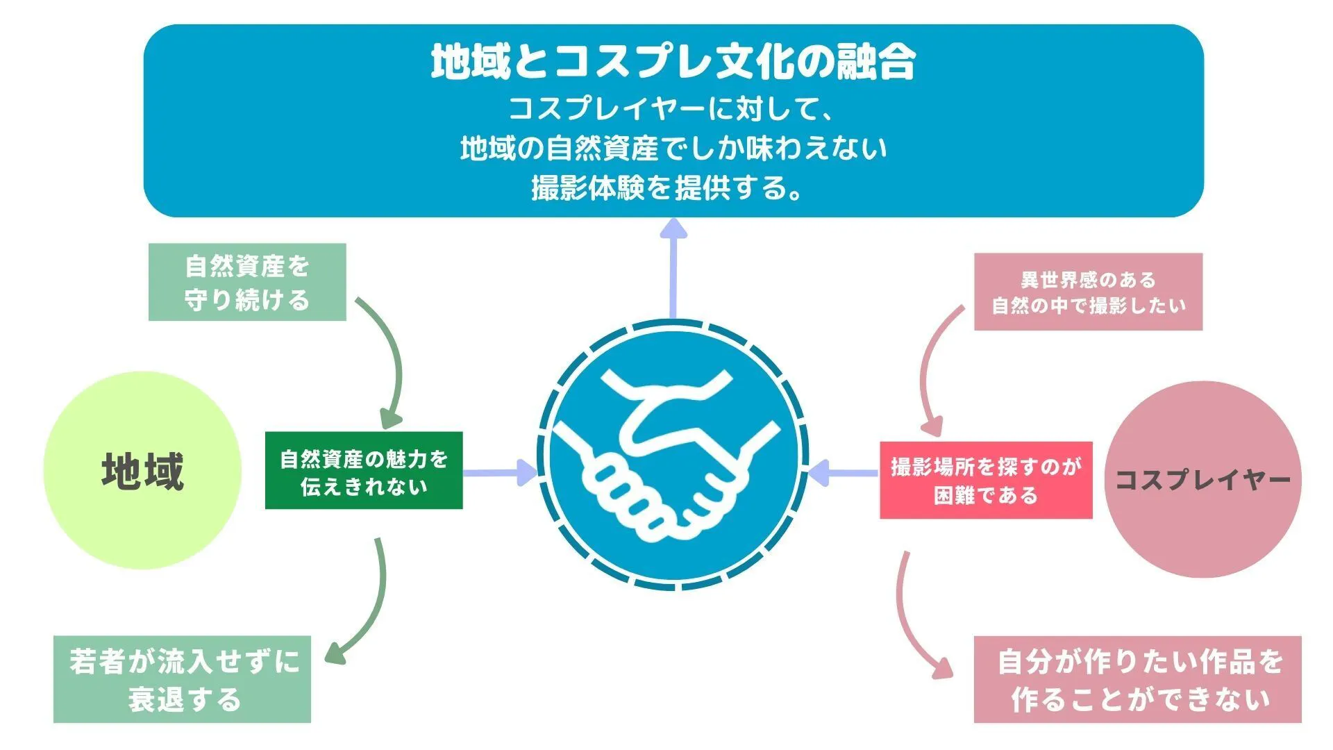 そこで我々は地域の課題とコスプレイヤーたちが抱える課題、両面を解決する事業をスタートすることにしました。