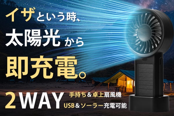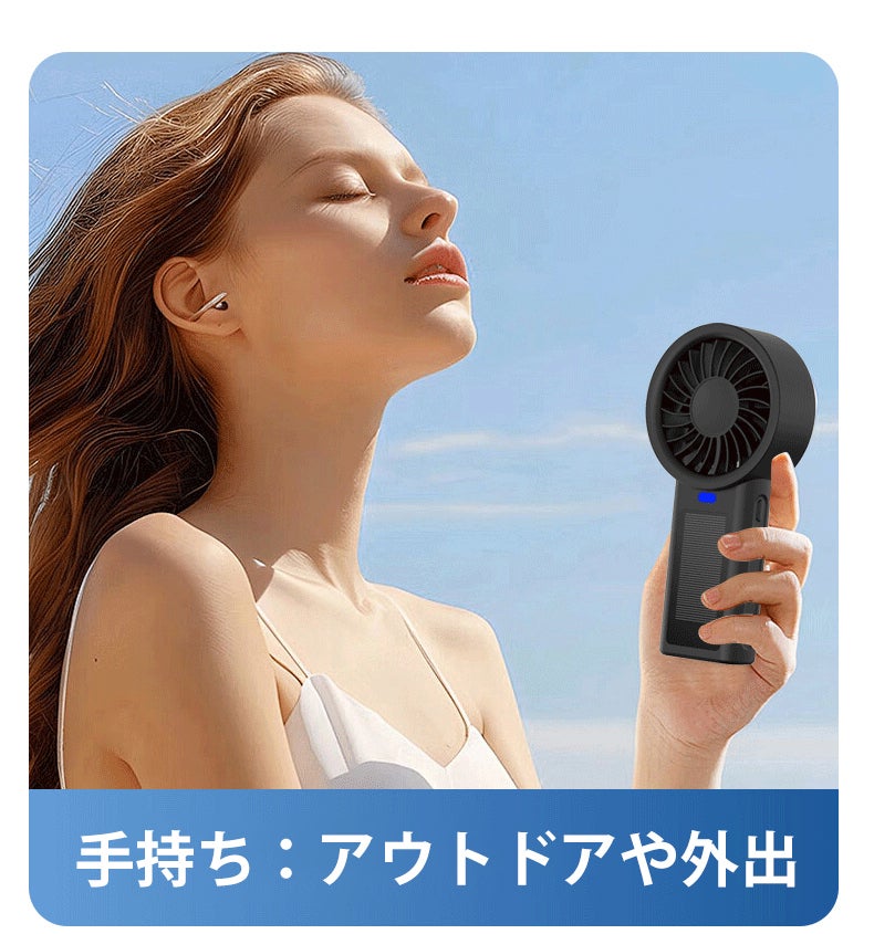 さらに、屋外でも太陽光でソーラー充電ができ、電源が取れない状況でも安心して使えます。アウトドアや猛暑日など、いざという時でも心強い味方です。さらに、屋外でも太陽光でソーラー充電ができ、電源が取れない状況でも安心して使えます。アウトドアや猛暑日など、いざという時でも心強い味方です。