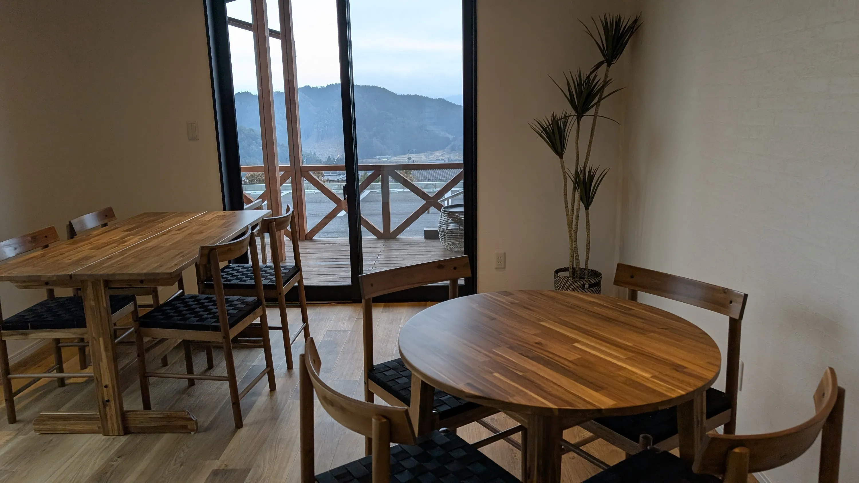 南アルプスが見えるカフェエリア。