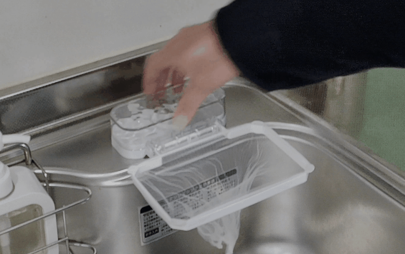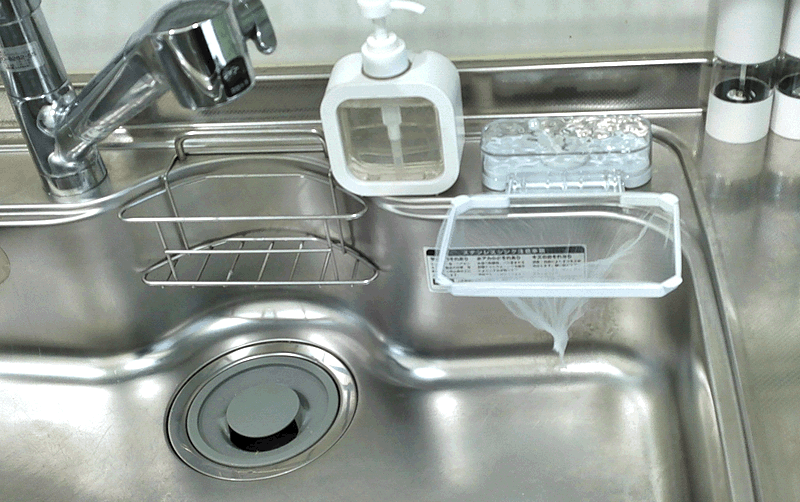 中に浮かせたキッチンドレインネットを本体に取り付け、ある程度のゴミがたまったらネット事捨てるので三角コーナーのように洗う必要がなくなります。そもそも三角コーナーを使わず直にゴミを流していた方は網かごのお手入れが不要になります。臭い!ヌメヌメ!!から卒業する事が出来ます。