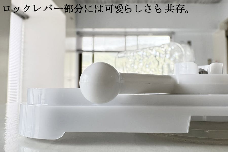 ロックレバーの取手部分をまん丸にする事で愛着ある雰囲気に仕立てました。