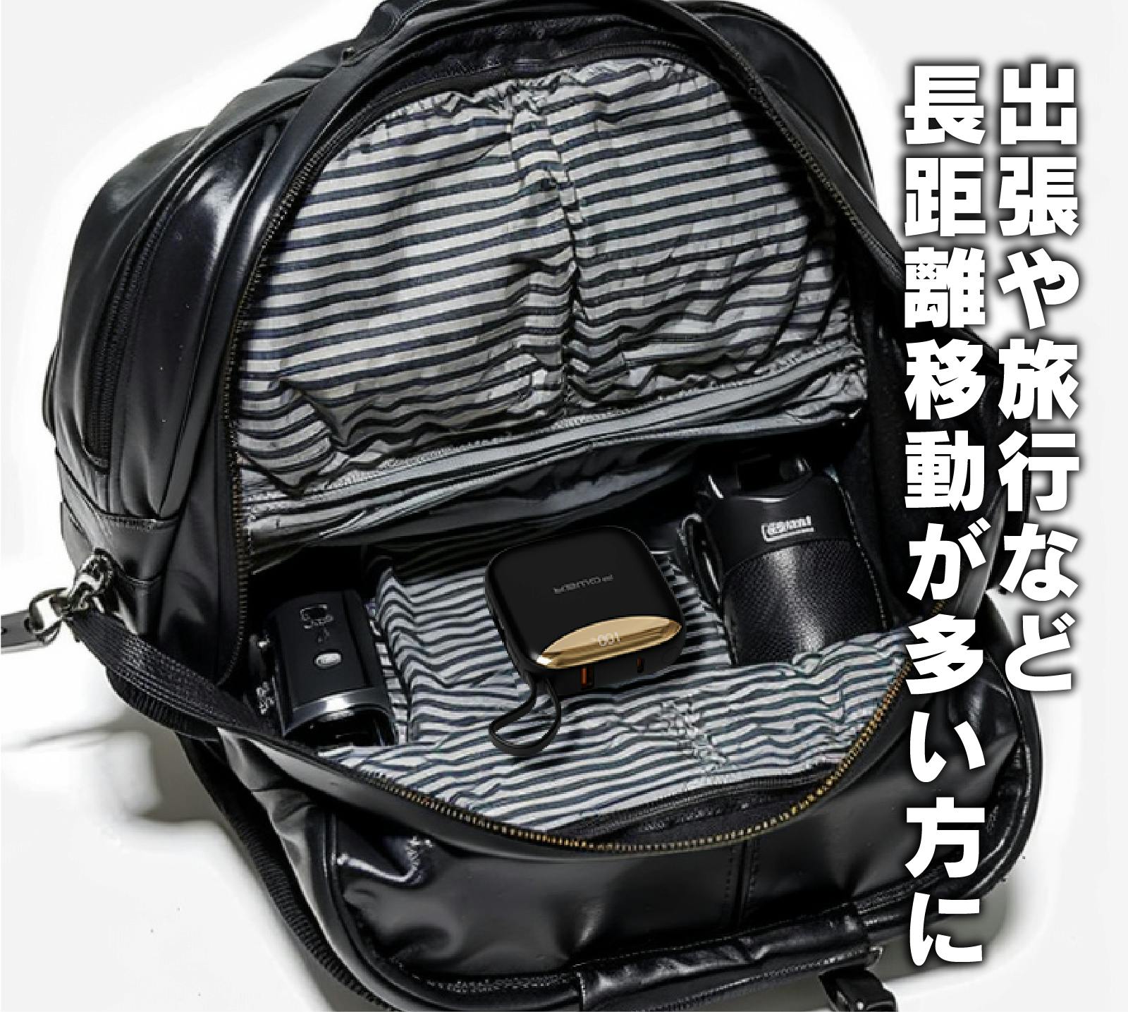 手に持ちながらの使用は煩わしいですよね。また持ち運びを快適にしたいと思うと容量が小さめになるので、複数の充電が難しいのももどかしいところです。