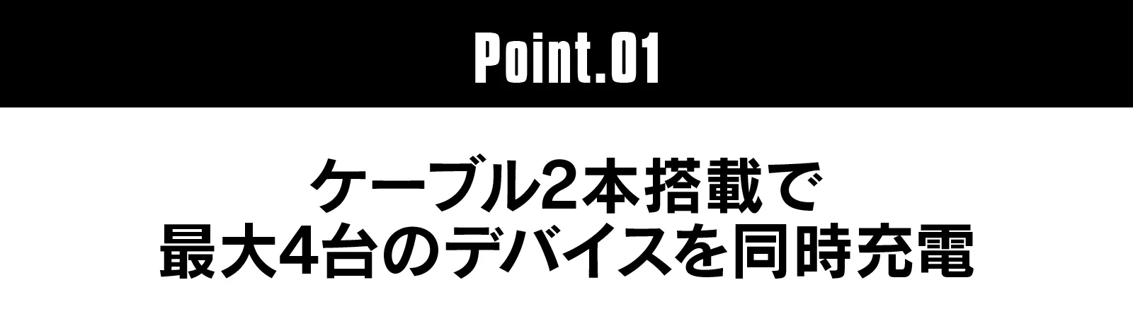コンパクトサイズなのに2本の内蔵ケーブルと2つのポートで、計4台のデバイスを同時充電可能!