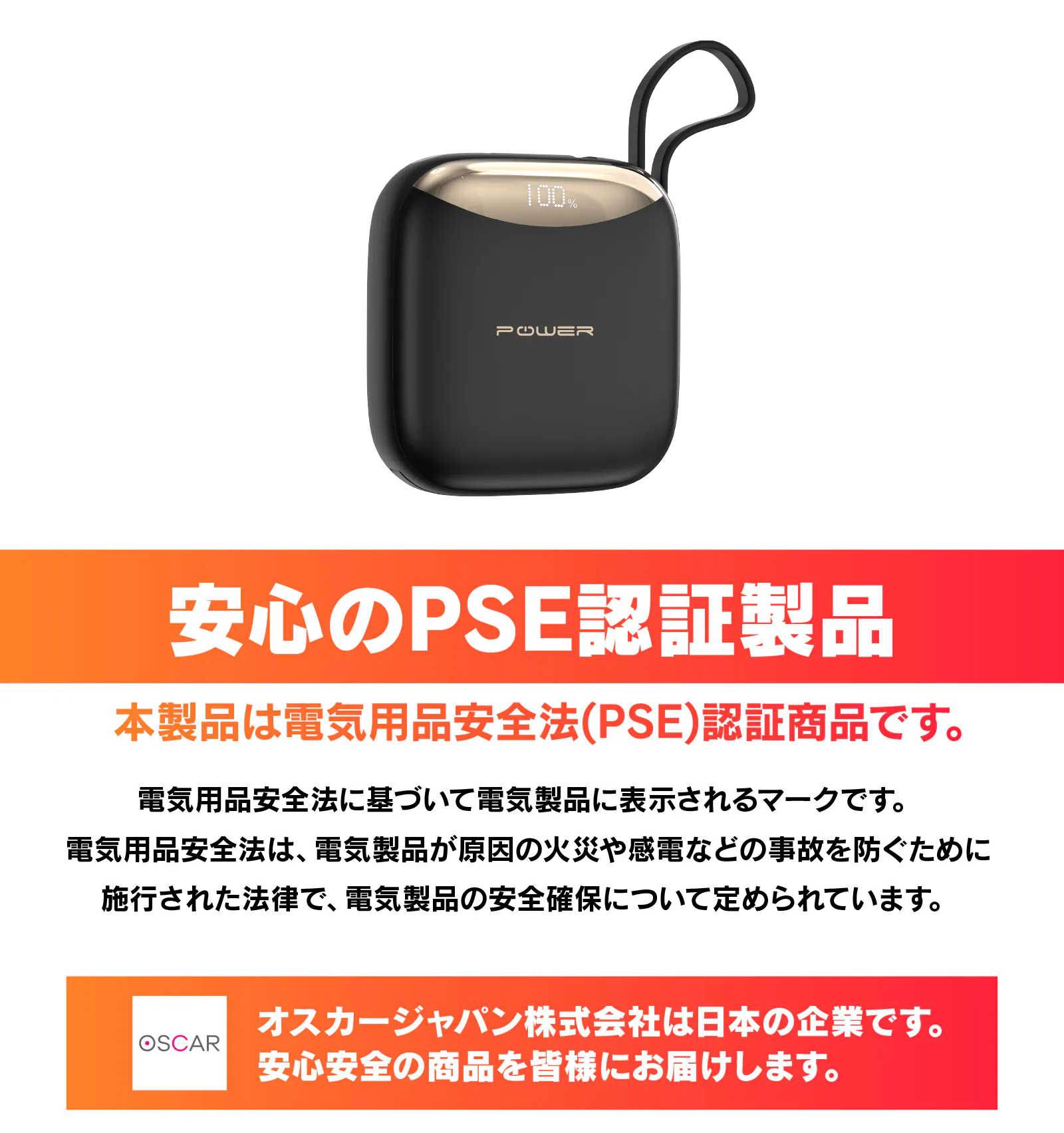 もちろん【POWER BANK mini】は日本の電化製品の安全基準であるPSE(電気用品安全法)をクリアした認証品です。