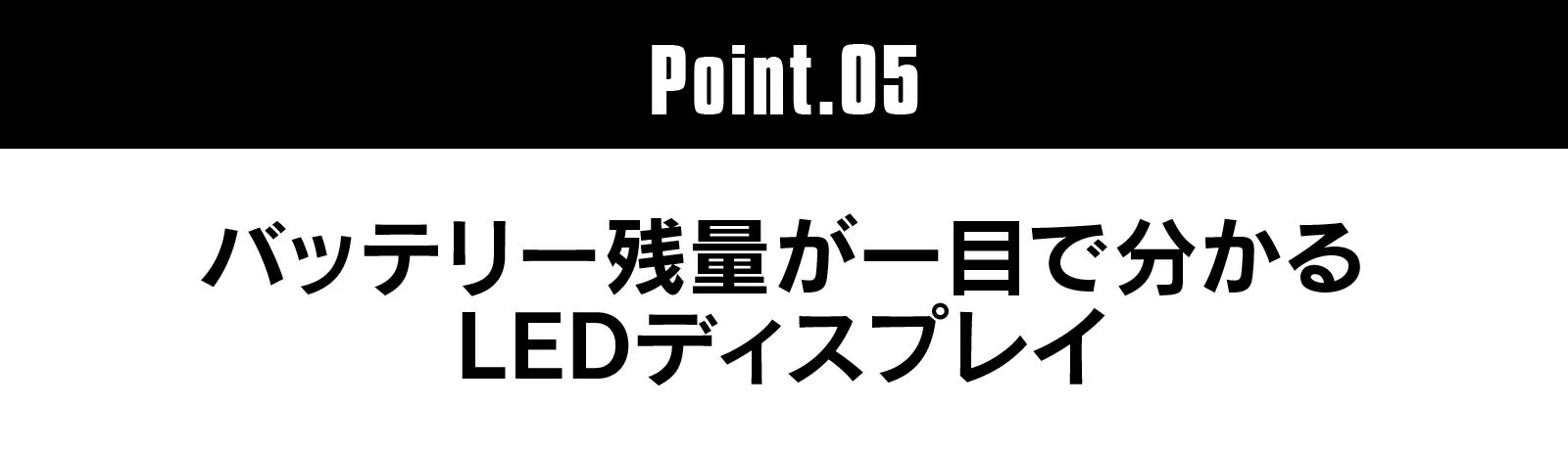 →本製品にはデジタルLEDディスプレイが搭載されており、バッテリー残量を0〜100%の数字で正確に表示します。充電時や使用時に自動で点灯し、いつでも残量を確認できます。