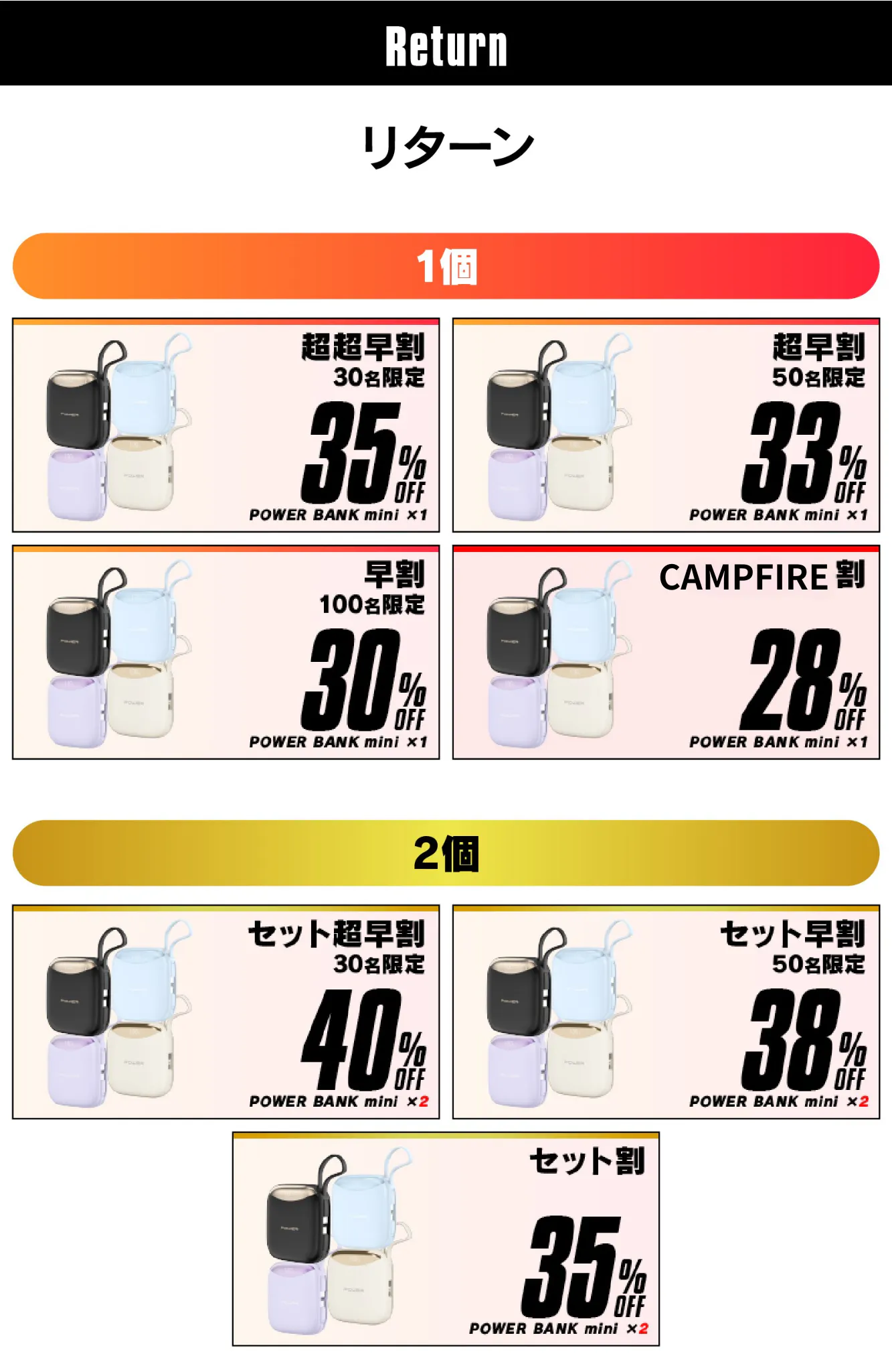 2025/05/24 13:18ご支援者様現在開催中の【POWER BANK|名刺サイズ・超軽量モバイルバッテリー】\アンコールプロジェクトはいよいよ残り1週間となりました!/前回の先行販売では大変多くのご支援をいただき、「買い逃した」「もう1台ほしい」との声にお応えして実現した本アンコール。今回が最後のチャンスになるかもしれません!! POWER BANK の魅力まとめ● 約135g、名刺サイズの超薄型バッテリー● 最大65W出力でスマホもPCも超速充電● USB-C×2ポートで2台同時充電もOK● PSE認証取得済み、安全性も◎● CAMPFIRE限定価格で手に入るのは今だけ!!持ち歩きにストレスのないサイズ感と、ハイパワーな機能性を両立した【POWER BANK】。ビジネスにも、旅行にも、防災にも、“持っててよかった”と感じられる1台です。この1週間を逃すと、一般販売&通常価格となります。▼ご支援はこちら▼https://camp-fire.jp/projects/842409/最後まで皆さまからの応援を心よりお待ちしております。引き続きどうぞよろしくお願いいたします!Oscar Japan Inc.POWER BANK プロジェクトチーム一同 もっと見る「リターン配送完了のご報告と御礼」