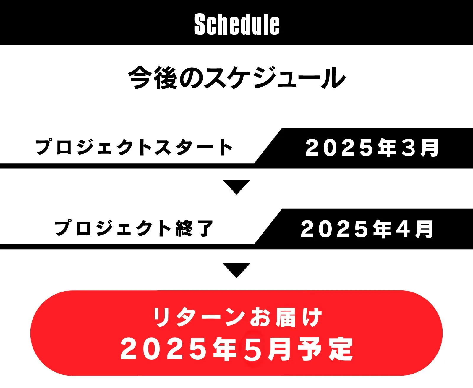 ※本文中に記載させていただいたスケジュールは、あくまでプロジェクト公開時点の予定です。クラウドファンディングの性質上、配送遅延のおそれがございます。原則として、配送遅延に伴う応援購入のキャンセルはできませんが、リターン配送予定月から3ヵ月を超えた場合には、希望者に限りキャンセルにて対応させていただきます。