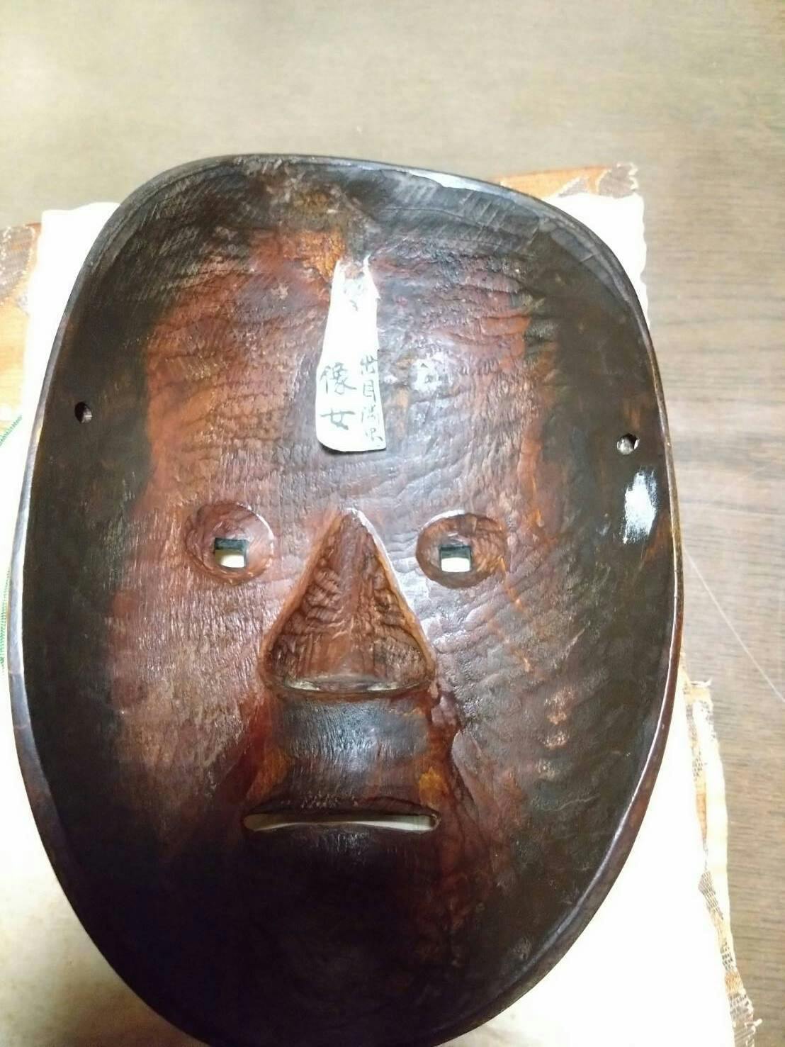 増女は、女性の能面の中でポピュラーである小面(こおもて)より年増な女性像を想定されているという説、或いは世阿弥のライバル役者であった増阿弥という人が創作したものとの伝承、増阿弥の芸は「冷えに冷えたり」と印象を後世に伝えたのも、この面の表情の冷静さ故かという説等諸説あり、羽衣の天人の役や、女神等に使用しますが、この面の銘には「像女」となっており、女性と神、菩薩の中間的な趣を残す稀な面です。