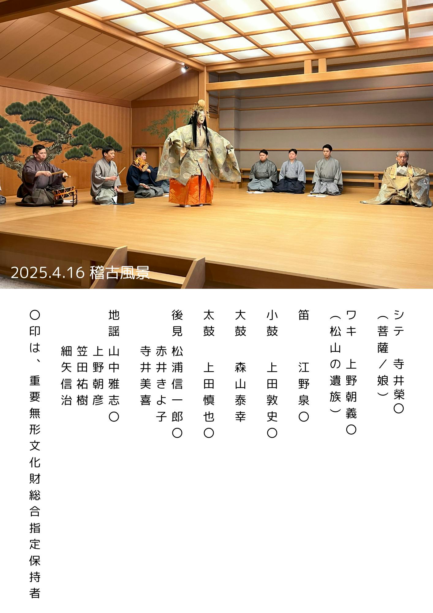 2025年6月7日(土)16:30~、新作慰霊の能「千人塚」初演の出演者です。このような機会に立ち会えることに深く感謝申し上げます。皆様ぜひ当日のご観劇をご期待ください。当日ご都合が合わない方は映像を配信いたします。このおもいが多くの方に伝わることを願っています。皆様、引き続きの応援、ご案内のほど何卒よろしくお願い申し上げます。
