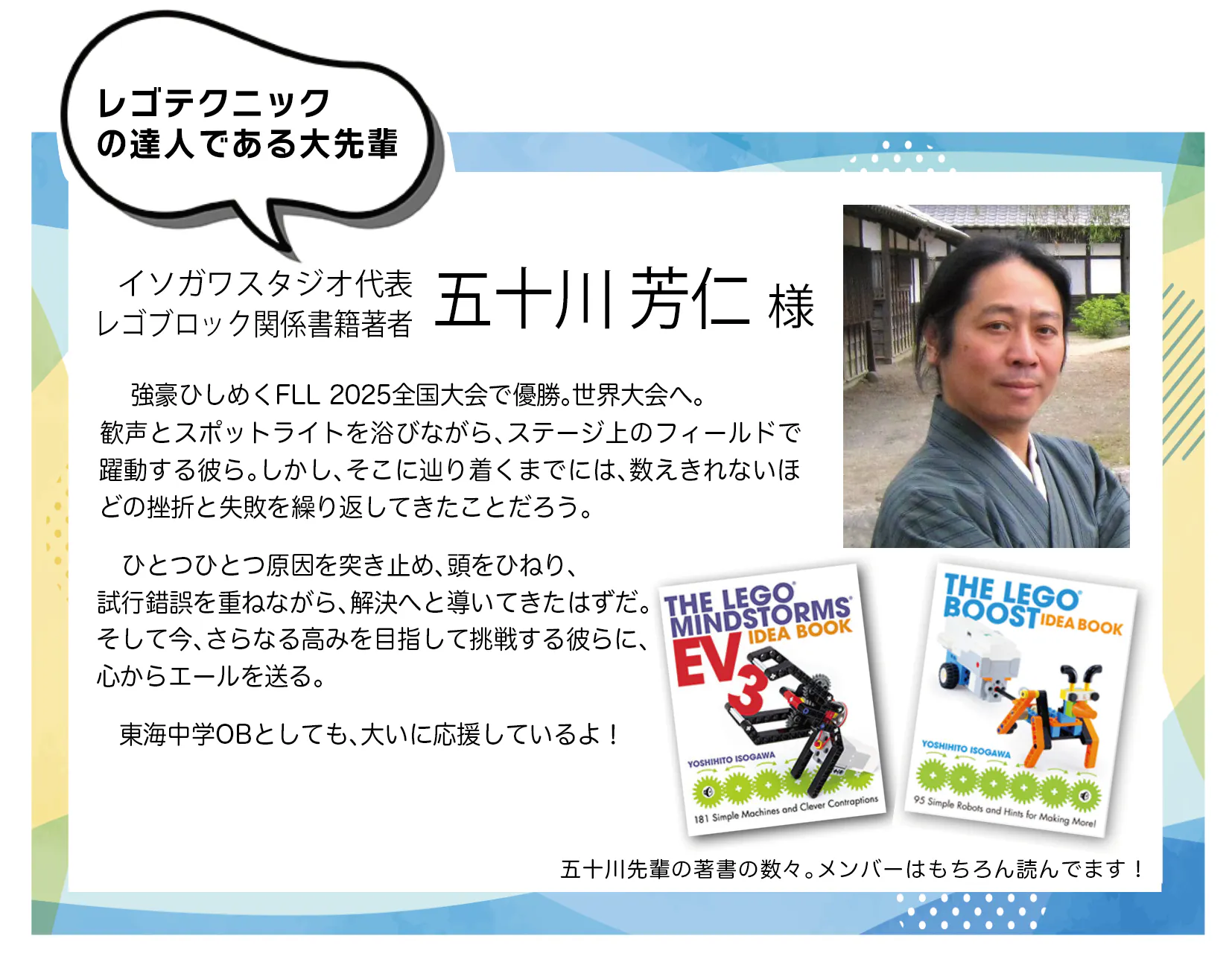 2025年4月にアメリカ・テキサス州ヒューストンで開催される「2025 FIRST Championship (FIRST LEGO League)」に日本代表として出場し、世界No.1を目指します!僕たちの学校は愛知県の私立中高一貫校で主体的な学びを大切にする伝統校です。お金のなるべくかからない形で活動してきましたが、世界大会挑戦には僕たちの想像を遥かに超える多額の費用が必要です。どうか、僕たちの挑戦を支援してください!