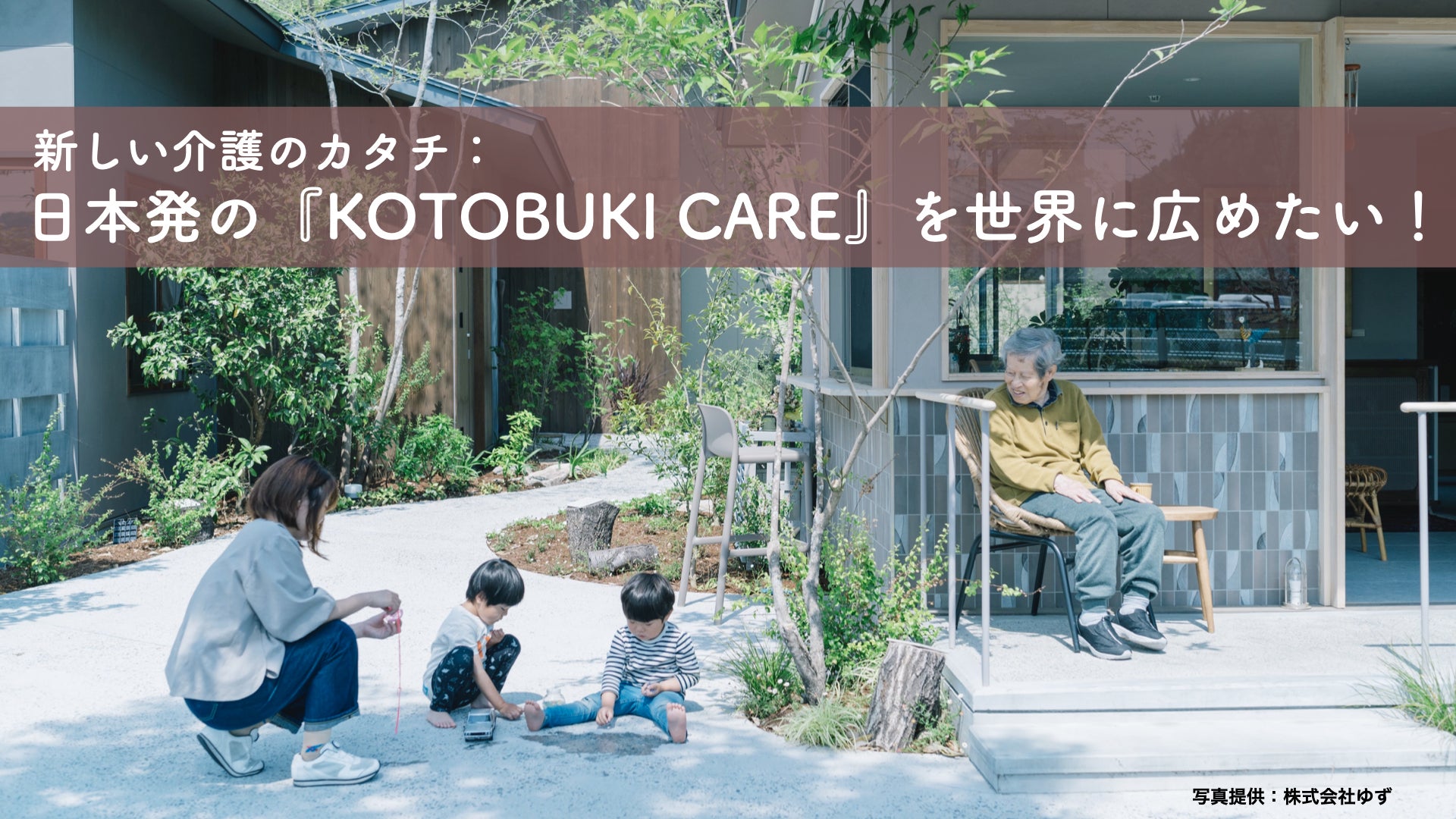 そして、日本の現場の試行錯誤の中で生まれた高齢者が他者との関わりの中で、最期まで自分らしくいきいきと生きることを支援する介護を世界に発信していくために『KOTOBUKI CARE(コトブキ ケア)』と名付けました。」