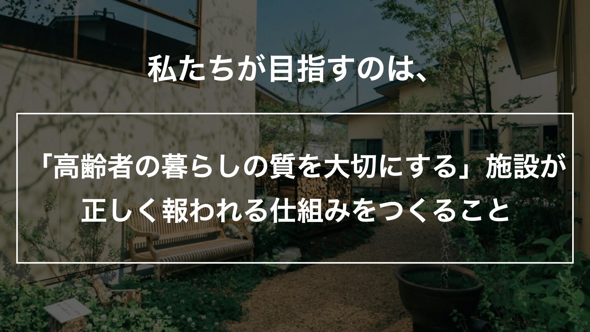 この挑戦を通じて、よりよいケアをする施設が報われる仕組みをつくります。