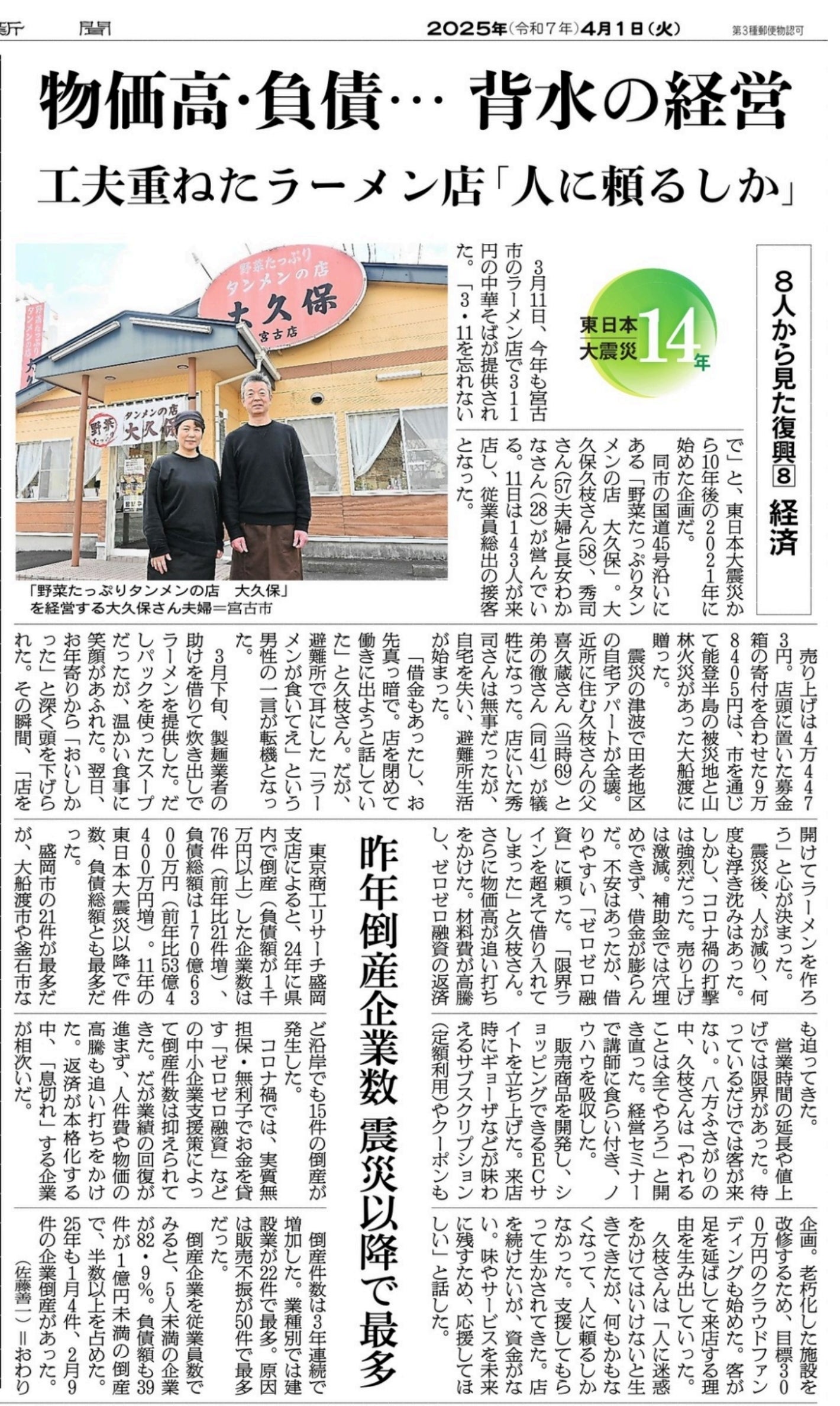 今回の朝日新聞社様の取材では「311円中華そば企画」にとどまらず、「今、存続が大変な事業所が出来ること、伝えたいこと。」という内容で受けました。