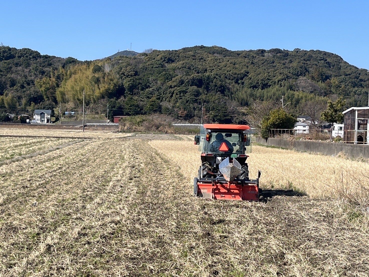 昨年の稲の株を微生物に分解させるために兄がトラクターで耕しています。
