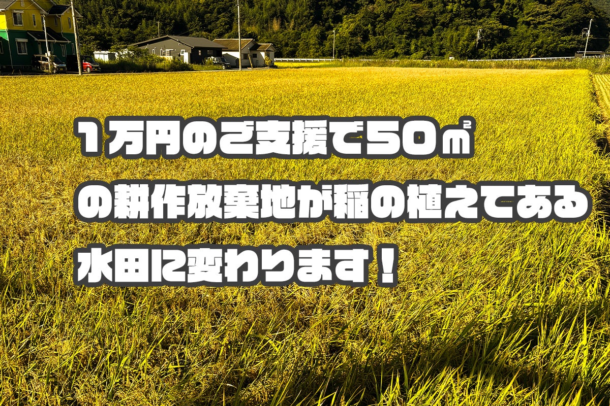 耕作放棄され2年経っています。多年草がたくさん生えてるので今年は米を植えずに草刈り等をして微生物資材と米ぬかを使い土壌の微生物の活動を活発化させ時間をかけておいしいお米が作れる土づくりをして来年度から米を栽培をします。