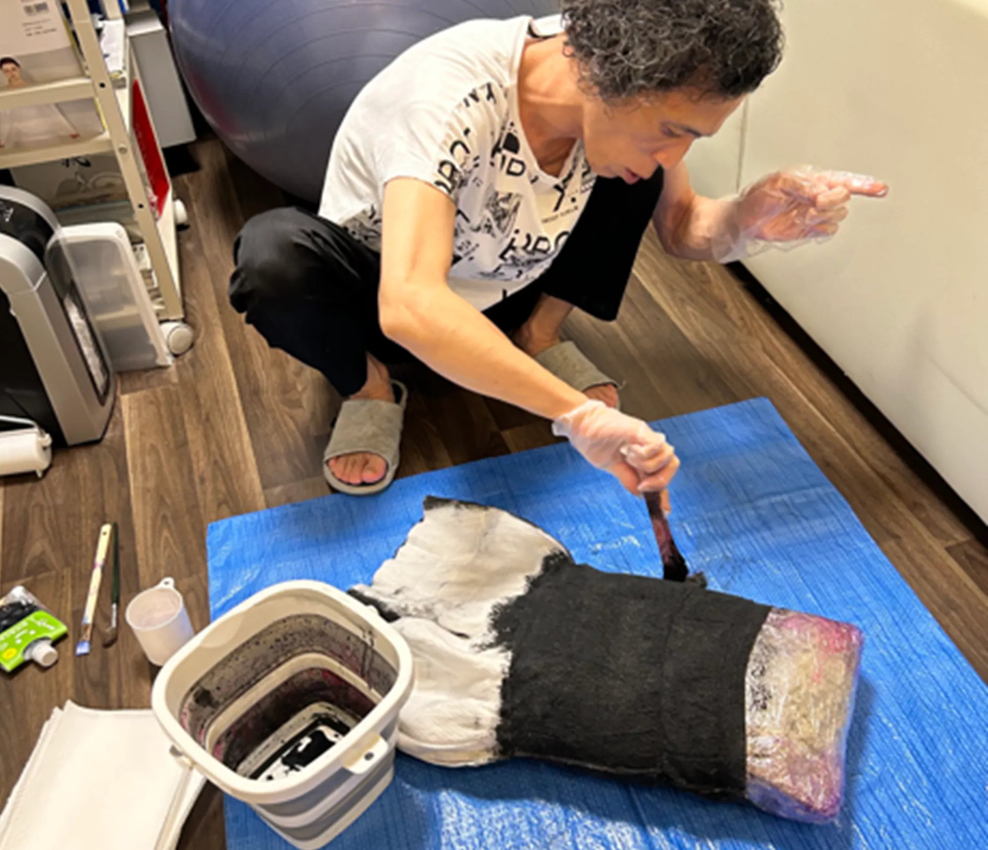 おむつのデザインはいろいろありますが、まずは「僕自身が『穿きたい』と思うおむつを作ってみよう!」と思って、市販のおむつを買って来て、自分好みの色におむつを染めてみました。