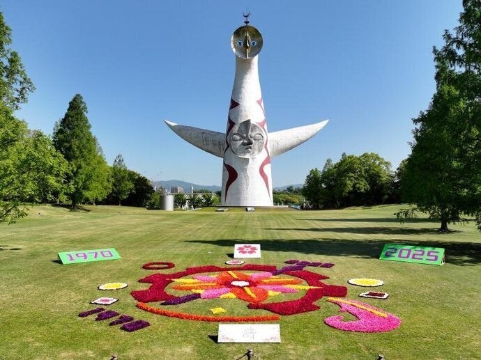 Osaka Flower Carpetは1970年万博開催地である、万博記念公園の太陽の塔の広場(太陽の塔前)から、吹田市をもっと盛り上げていこう!と集まった産官学の連携で結成したOsaka Flower Carpet実行委員会(※)が中心となり行っている取組です。