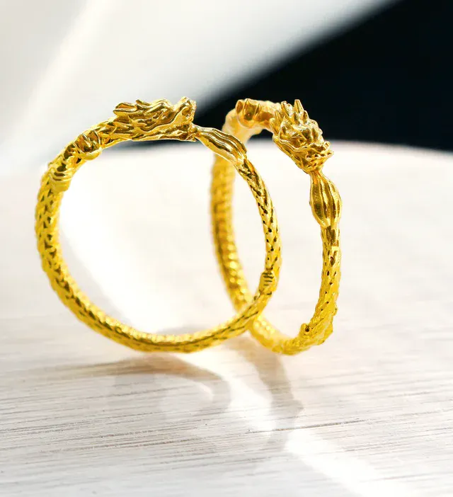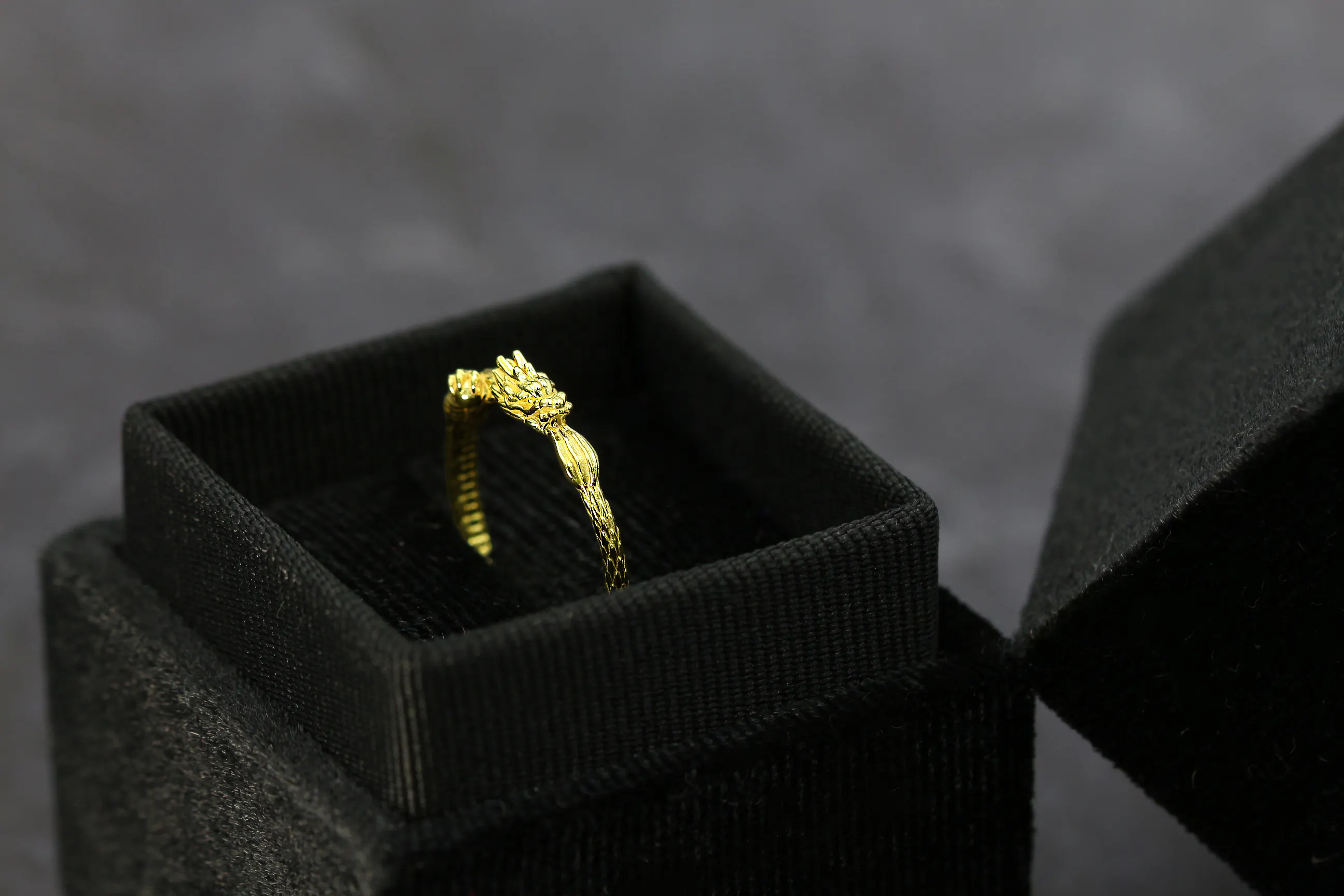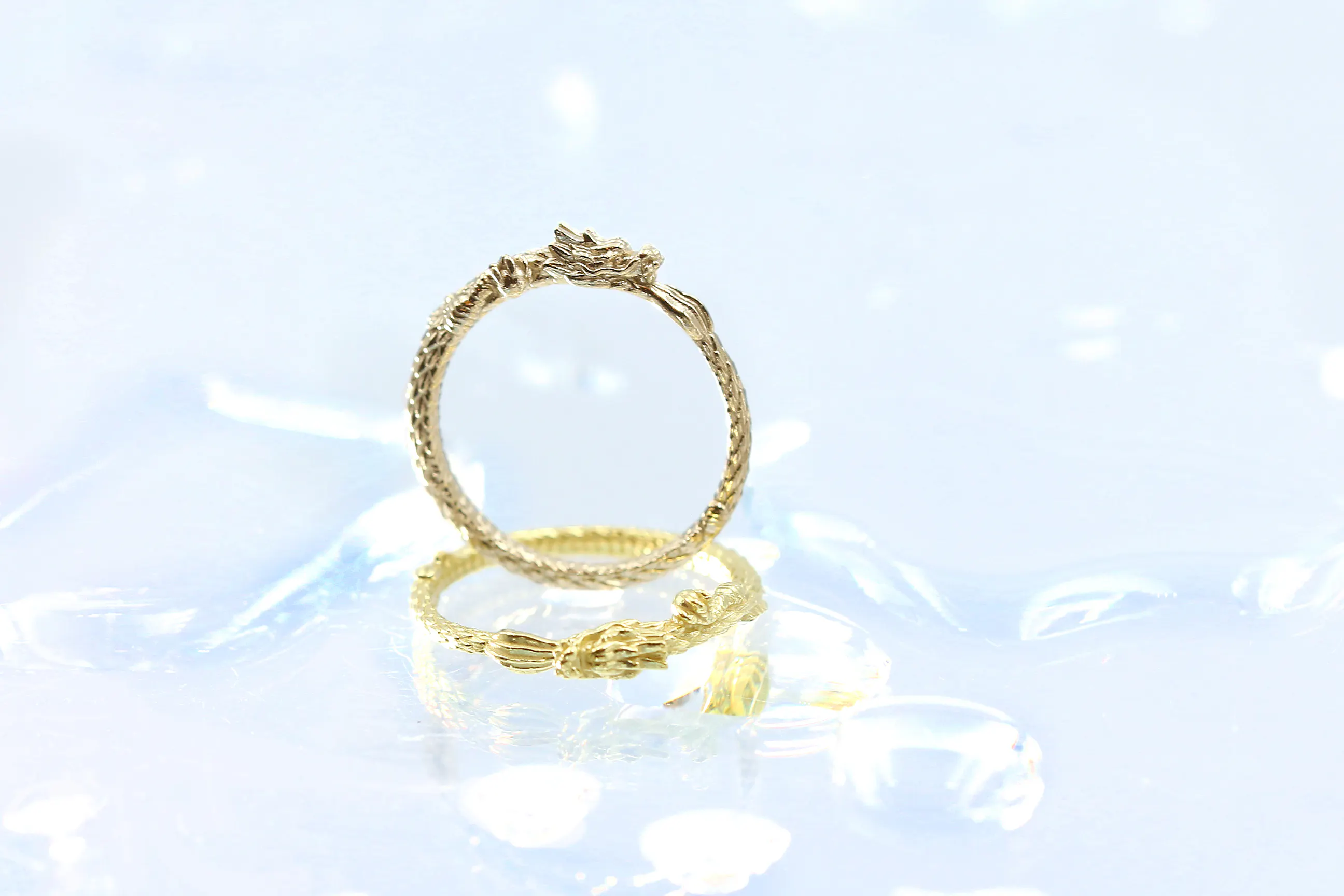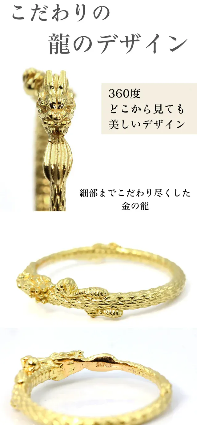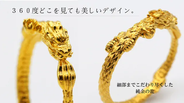 素材は世界的に価値が認められている「K24 純金」を選び、純金のもつパワーと龍の持つパワーを一体とした、「黄金のリング」が誕生しました。