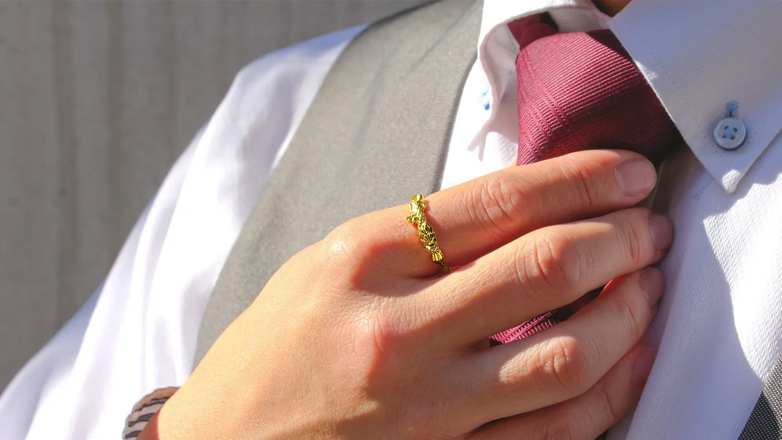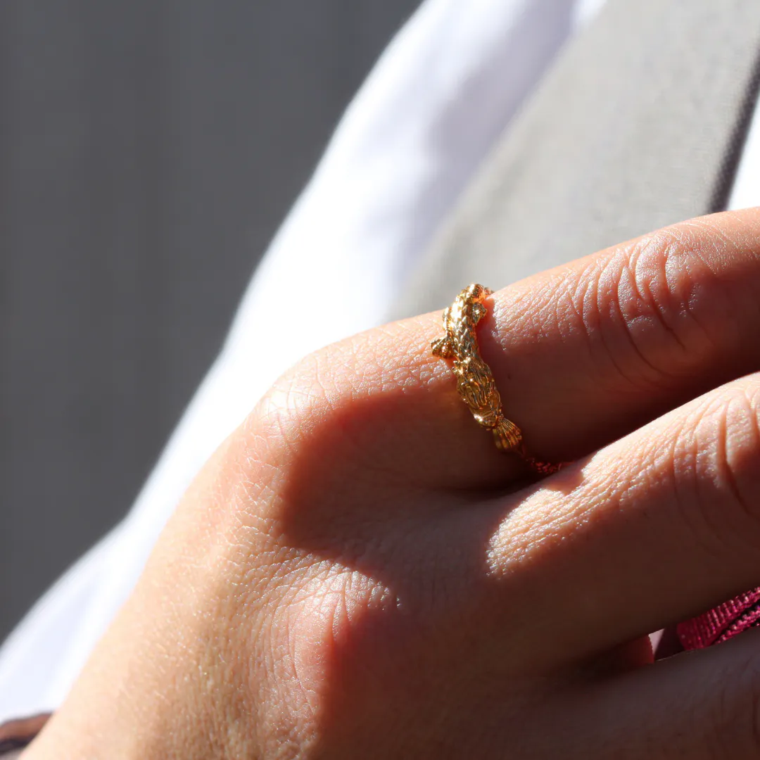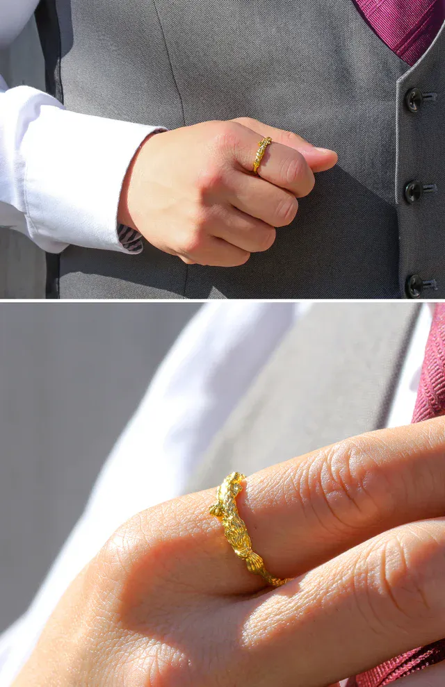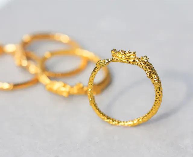 カッコよく、美しく、でもさりげなく着けられる「黄金の龍」のリング。